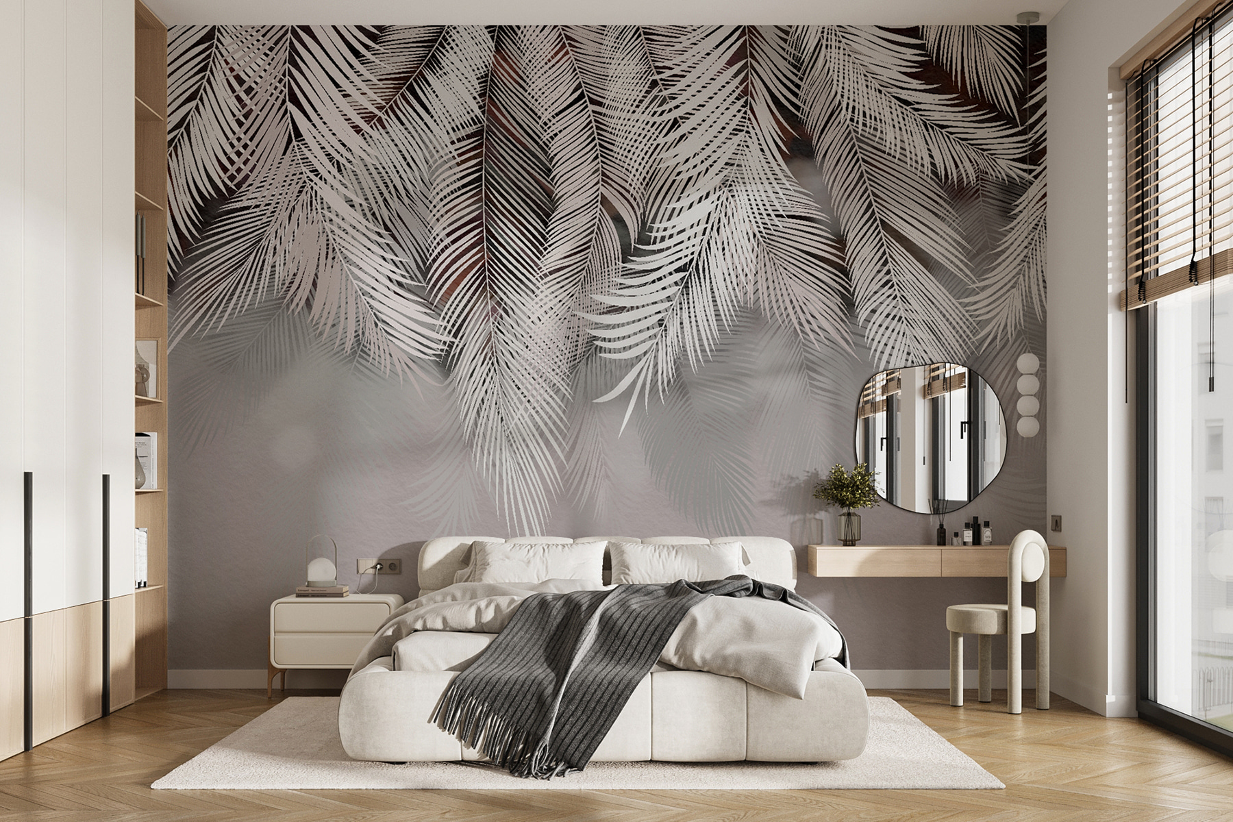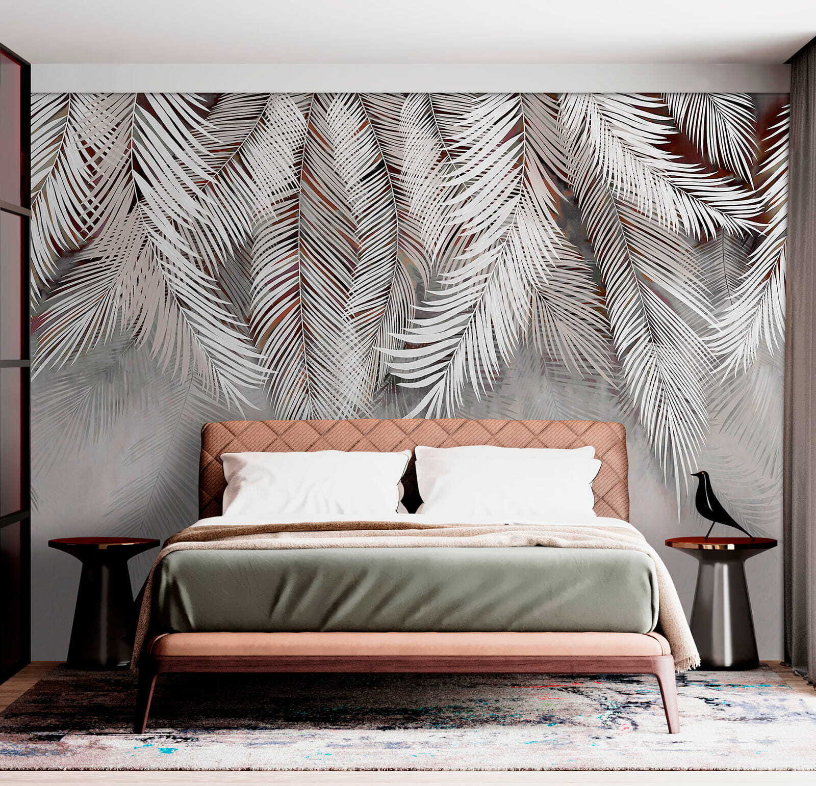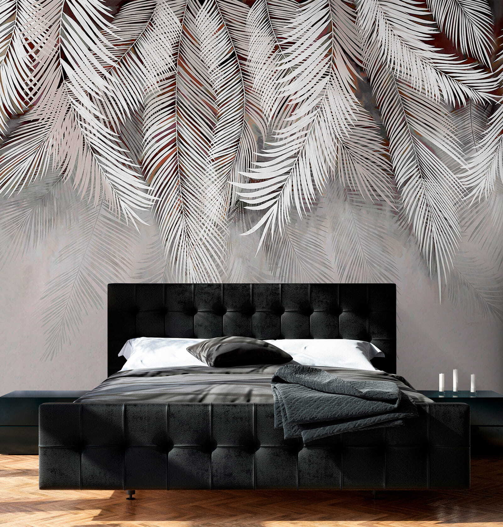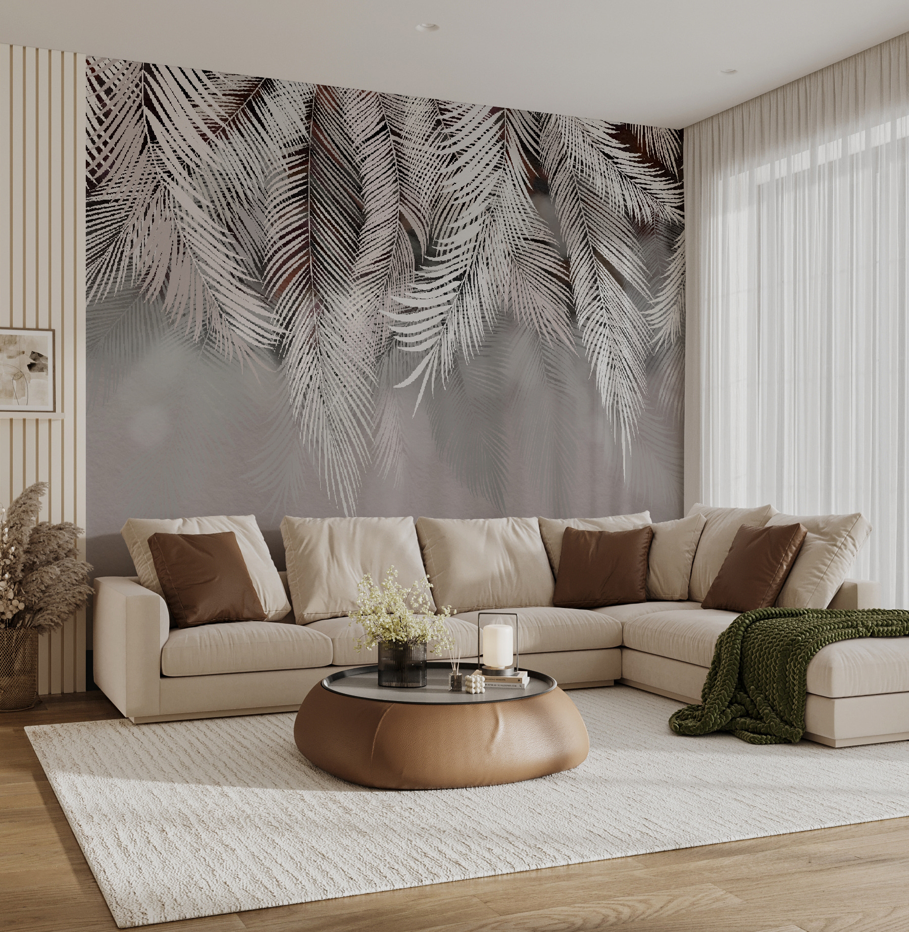 Transforme cualquier habitación con este encantador mural con elegantes hojas de palmera bailando sobre un suave fondo. Imagínese descansando en un rincón acogedor, con el ambiente sereno que le rodea como un cálido abrazo. La sencillez del diseño hace que combine bien con la mayoría de la decoración, ya sea boho chic o minimalista moderna. Imagina la luz filtrándose, proyectando sombras que hacen que las hojas casi se balanceen. Es como traer un trozo de paraíso al interior, perfecto para esos momentos en los que necesitas un poco de evasión. ¿A quién no le gustaría sentirse como en unas vacaciones tropicales todos los días?