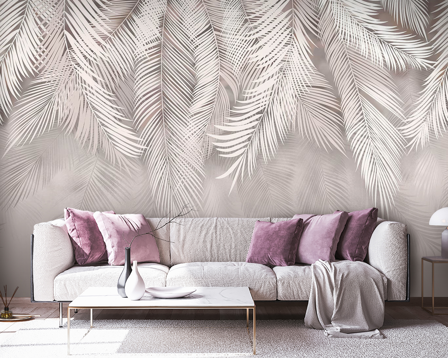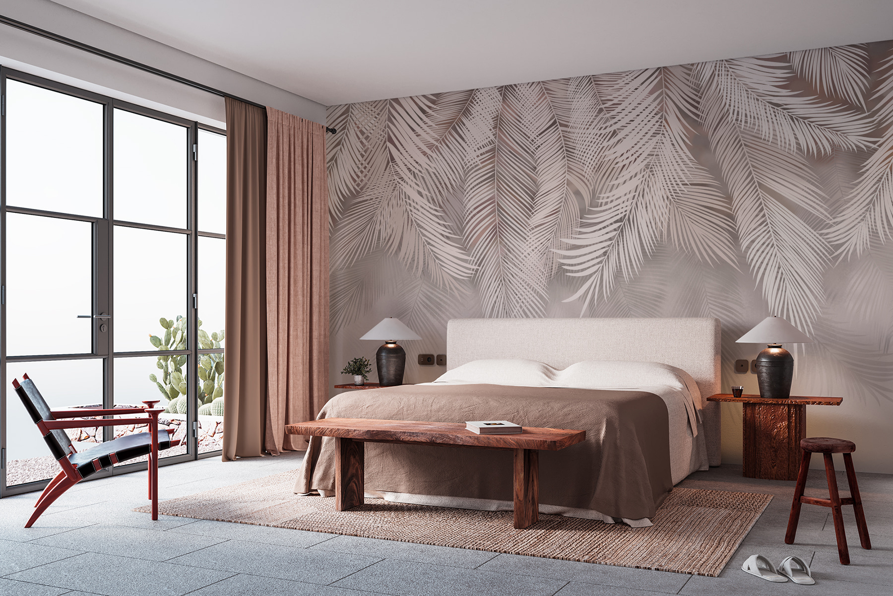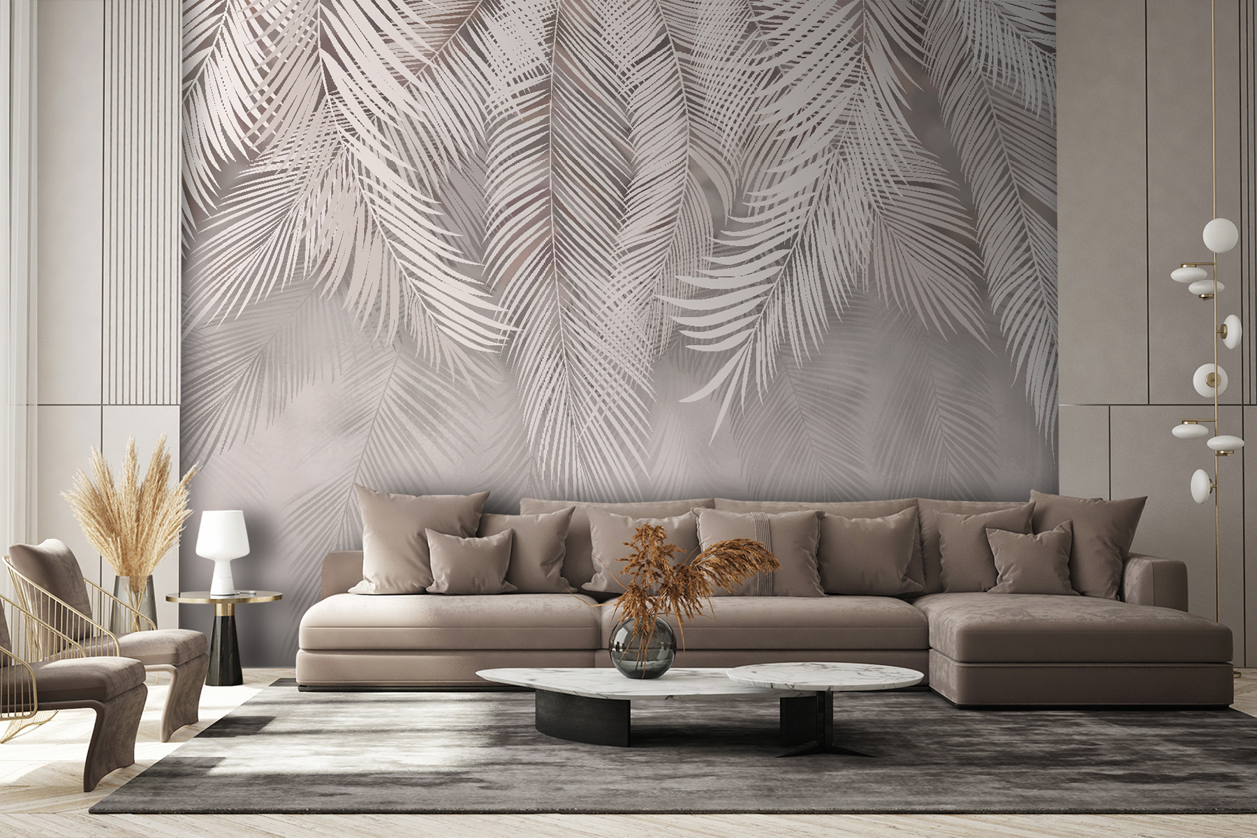 4 valoraciones en Fotomurales Elegantes hojas de palmera sobre fondo beige