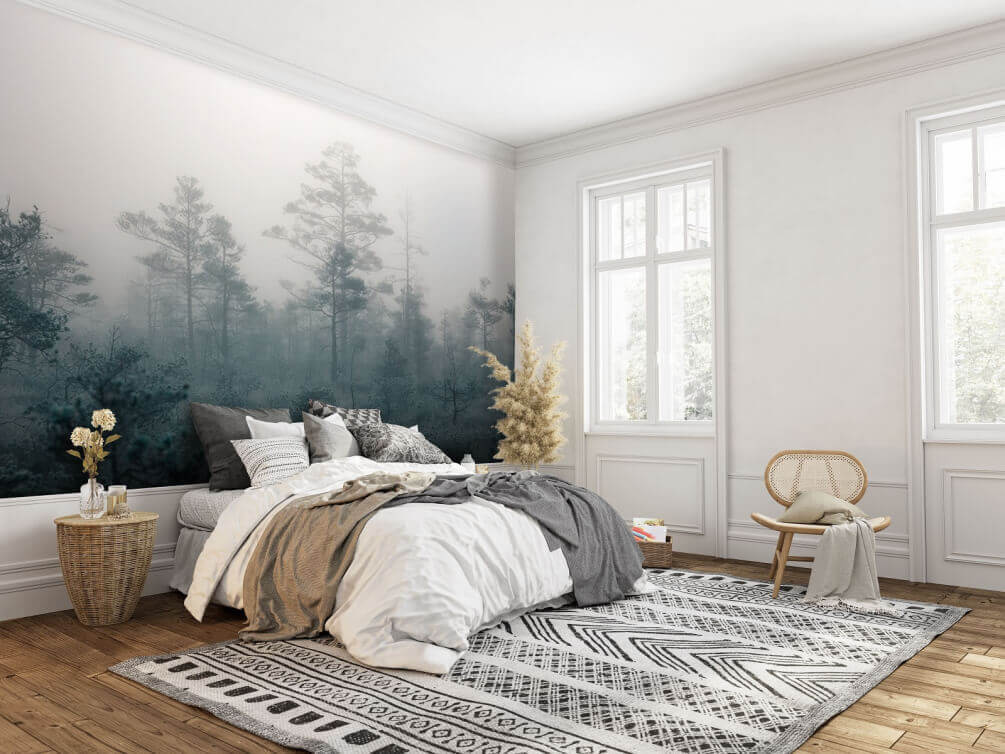 Transforma tu espacio en un remanso de paz con el mural «Bosque brumoso con árboles». Esta obra maestra captura el misterioso encanto de un bosque envuelto en niebla, creando una atmósfera relajante que te envuelve como un suave abrazo. Imagina tomarte un té mientras contemplas los árboles que emergen de la niebla, casi como si susurraran los secretos del bosque. Es el toque perfecto para un salón o un rincón de lectura acogedor. Además, puede dar pie a conversaciones: ¿a quién no le gustaría compartir historias sobre sus propias aventuras en el bosque? Este mural no es solo decoración, es un portal de ensueño a la naturaleza que hace que la vida cotidiana sea un poco más encantadora.