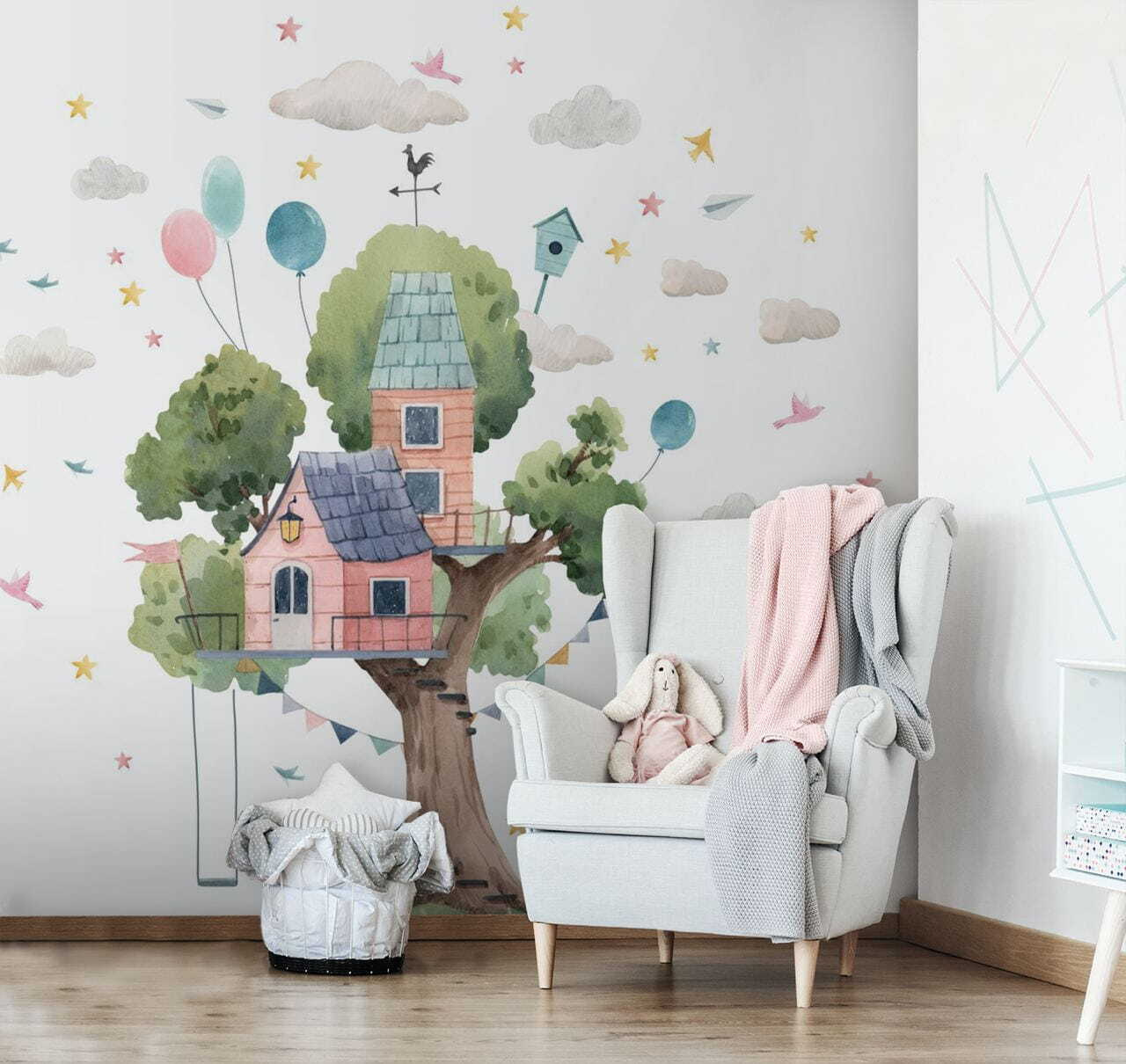 Imagina una caprichosa casa en un árbol, flotando en un mundo de ensueño pintado con acuarelas. Este mural no es solo una imagen, ¡es una invitación a la aventura! Aporta la esencia de la infancia a cualquier habitación, perfecta para despertar la imaginación. Los colores pastel, los globos divertidos y los encantadores pájaros pueden transportar a cualquiera a aquellos días despreocupados en los que se trepaba a los árboles y se soñaba despierto. Imagínese un rincón acogedor donde la imaginación se desata y los niños se ríen mientras juegan a tomar el té en la copa de un árbol. Este mural puede convertirse fácilmente en el centro de un espacio mágico, que ofrecerá alegría y asombro durante muchos años.