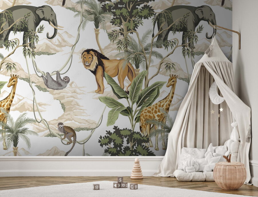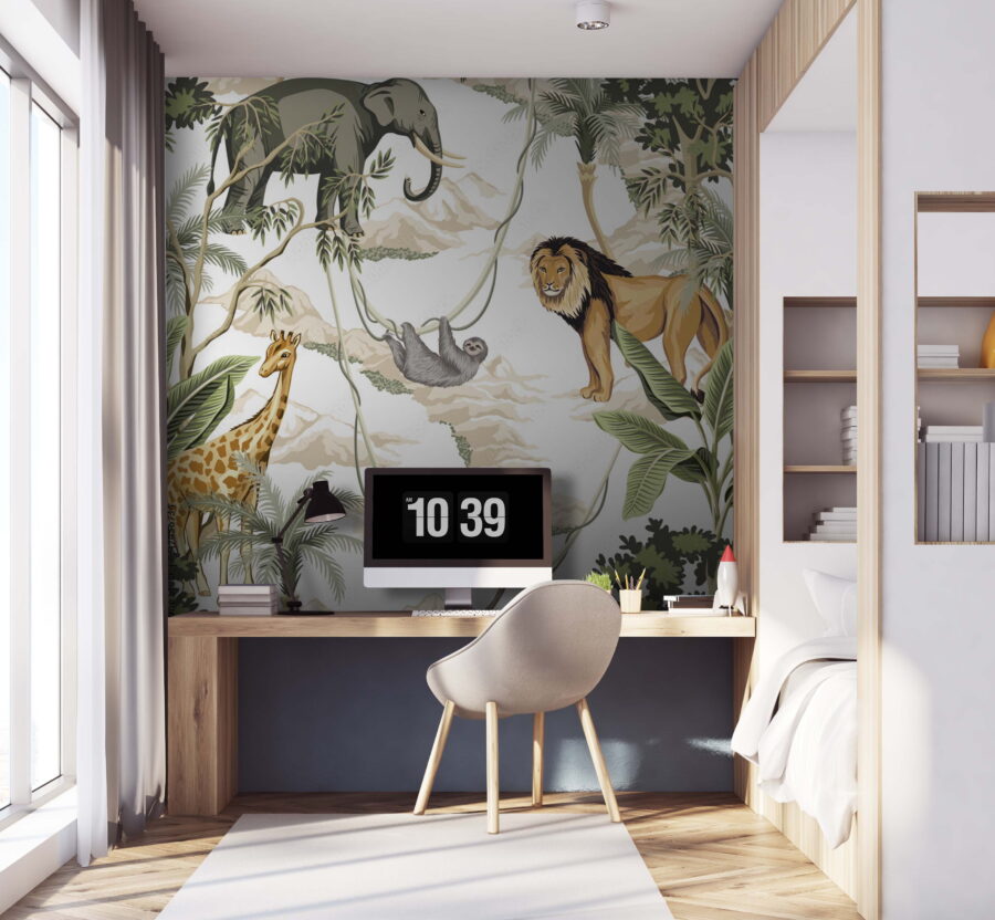 Transforma una habitación en una aventura selvática con este vibrante mural. Imagínate tomando café mientras un león observa todo con indiferencia, o un perezoso te da el choque de manos más lento de la historia. Con jirafas asomándose y elefantes añadiendo un toque de majestuosidad, ¡es difícil no sentir una chispa de inspiración salvaje! Perfecto para esos rincones acogedores o esa pared destacada que necesita un poco de vida. Imagina las historias que contará: tus invitados se sentirán como exploradores cada vez que entren en la habitación. ¡Trae el aire libre al interior, sin los mosquitos!