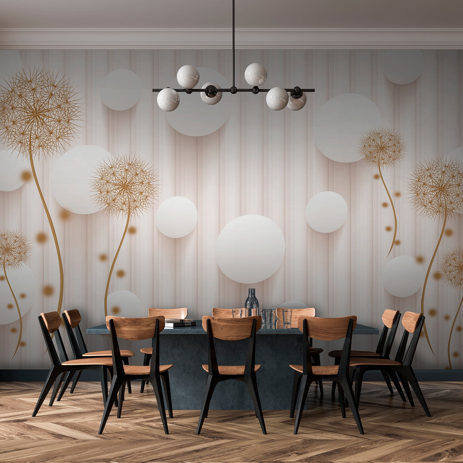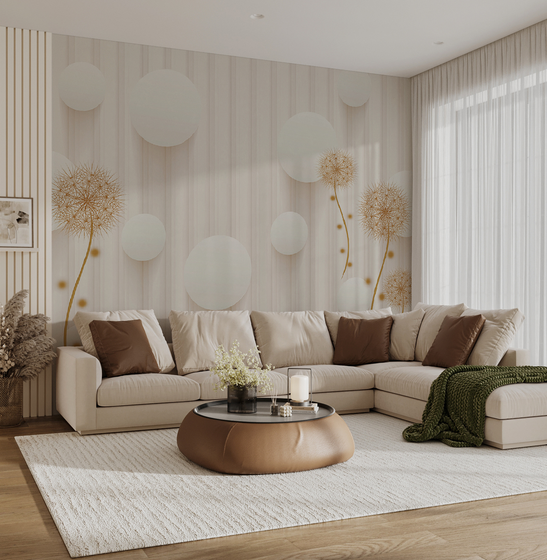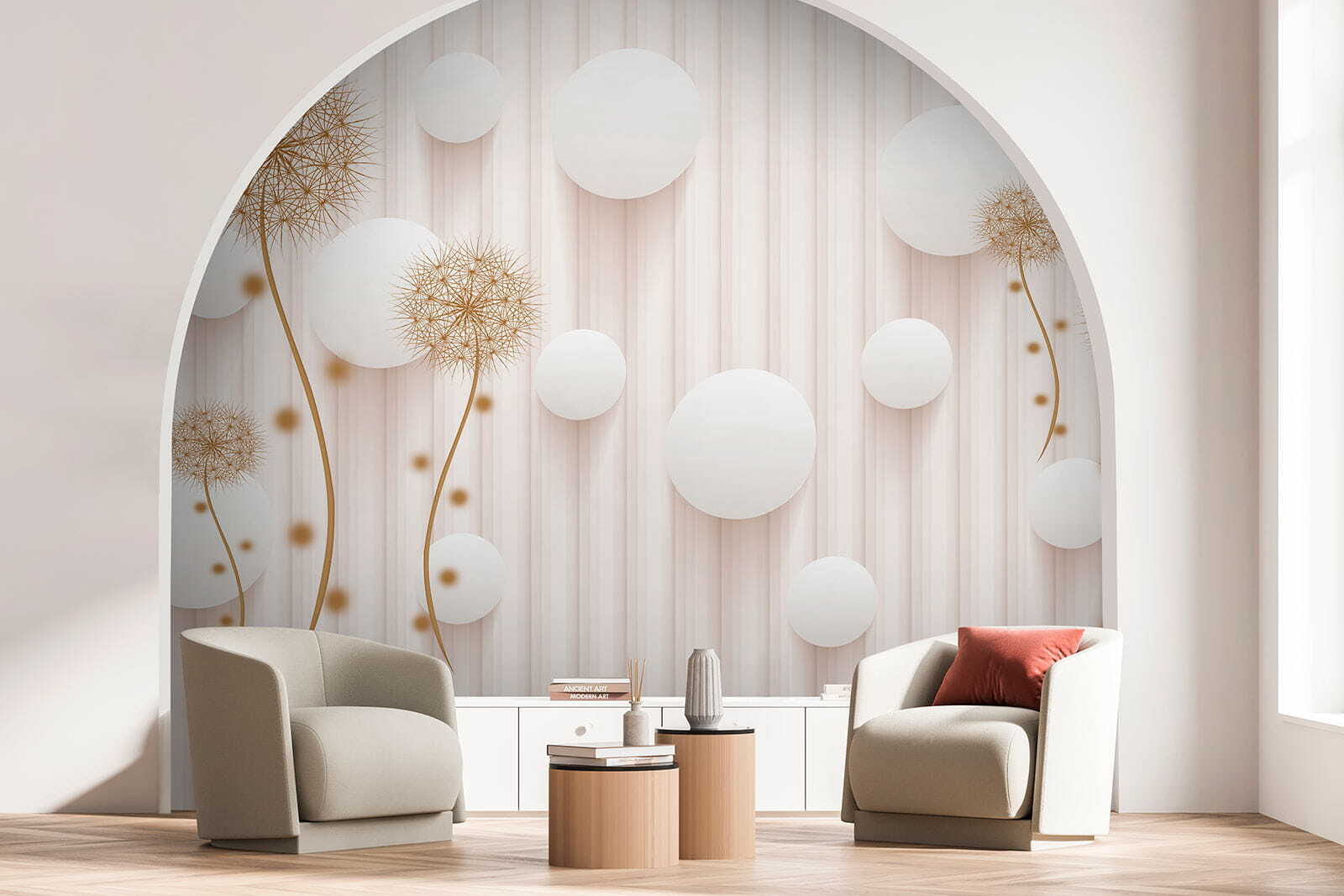 Transforma cualquier espacio con el caprichoso encanto de los “Murales Círculos blancos y dientes de león”. Imagina que entras en una habitación donde los dientes de león bailan juguetones junto a círculos blancos, creando un ambiente ligero y soñador. Es como si tus paredes te susurraran secretos de sol y brisas suaves. Perfecto para un rincón de lectura acogedor o una entrada luminosa, este mural añade un toque de la magia de la naturaleza sin las alergias al polen. Los invitados sonreirán, los niños se asombrarán y hasta puede que usted sueñe despierto. ¿Quién iba a decir que un mural podría despertar tanta alegría? Imagínatelo: mañanas luminosas con un telón de fondo que parece un fresco día de primavera, durante todo el año. Perfecto, ¿verdad?