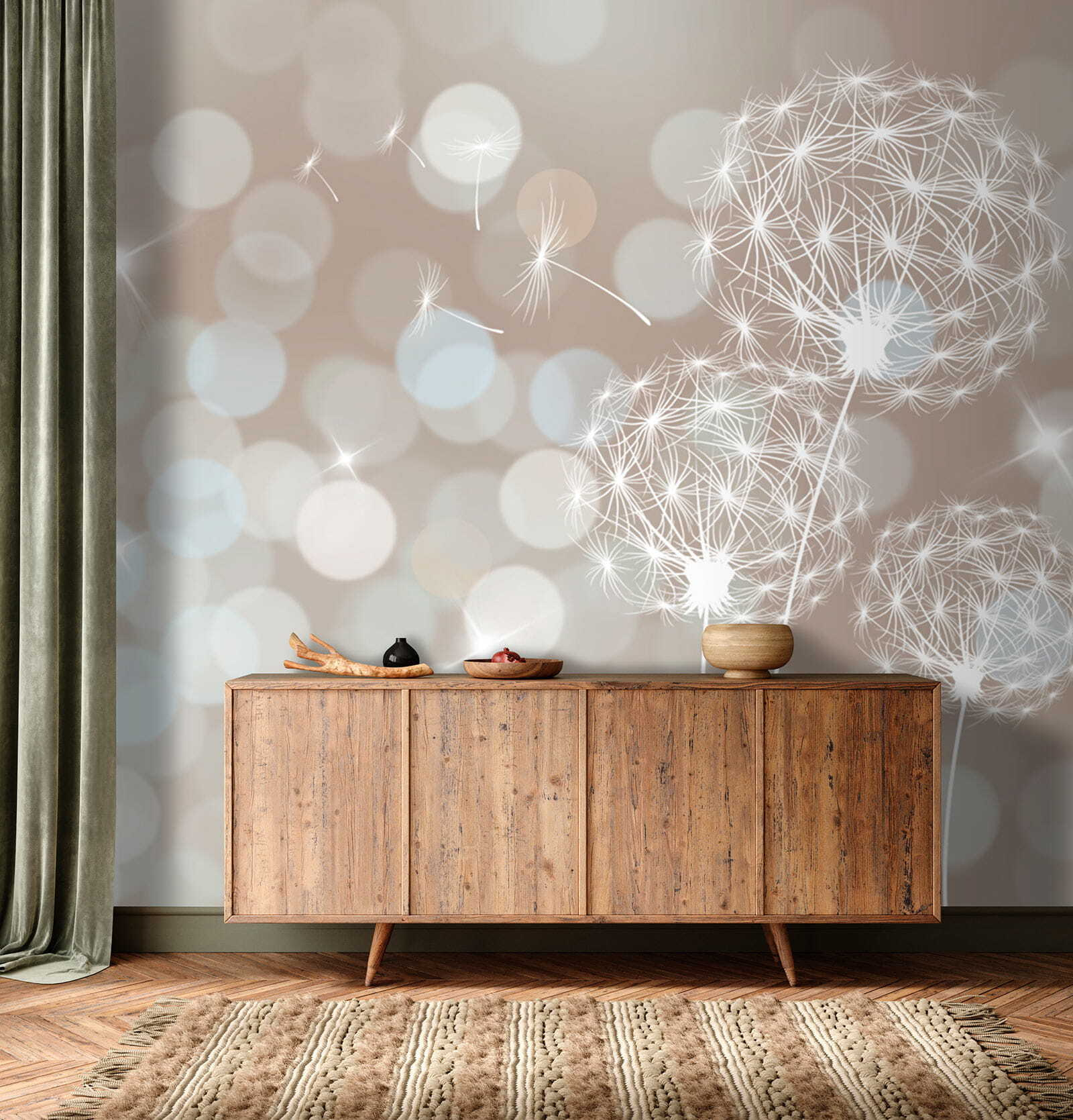 Imagina despertarte con esta escena cada día: “Dientes de león soñadores flotando en la luz”. Suena a cuento de hadas, ¿verdad? Este mural de pared transforma instantáneamente su habitación en un espacio sereno y mágico. Es como una brisa tranquila en un día de primavera, que hace que los dientes de león floten suavemente en el aire. Perfecto para cualquier espacio que necesite un toque de naturaleza y capricho. Este mural tiene el don de hacer que las habitaciones pequeñas parezcan abiertas y espaciosas, casi como entrar en un suave claro encantado. Ideal para los que sueñan despiertos, los amantes de la naturaleza o cualquiera que esté cansado de las paredes en blanco.