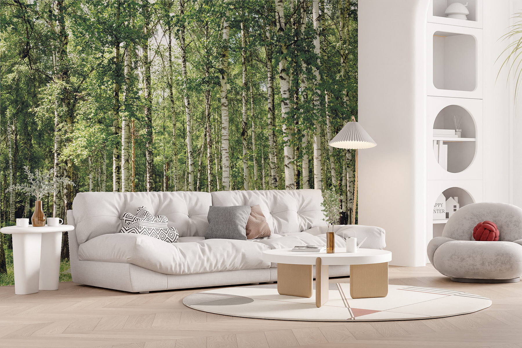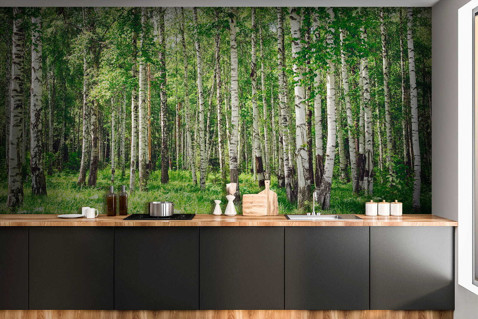 Imagínese entrar en un espacio acogedor lleno del aroma de las hojas frescas y los susurros de la naturaleza. Este mural, con sus vivos abedules y sus hojas de un verde vibrante, lleva esa sensación directamente a su hogar. Es como tener un pequeño bosque al alcance de la mano, sin necesidad de limpiarlo. Imagínate tomando tu café matutino, contemplando esos altos árboles que casi parecen mecerse con la brisa. Es perfecto para alegrar un salón o añadir un ambiente relajado a un dormitorio. Con sólo una mirada, casi podrá oír el susurro de las hojas. Los amantes de la naturaleza apreciarán sin duda cómo este mural puede transformar una pared en una escapada serena. Además, ¿quién no querría un poco más de vegetación en su vida? En serio, es como una inyección de ánimo instantánea.