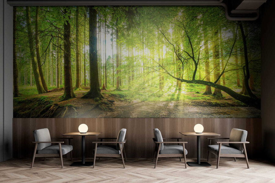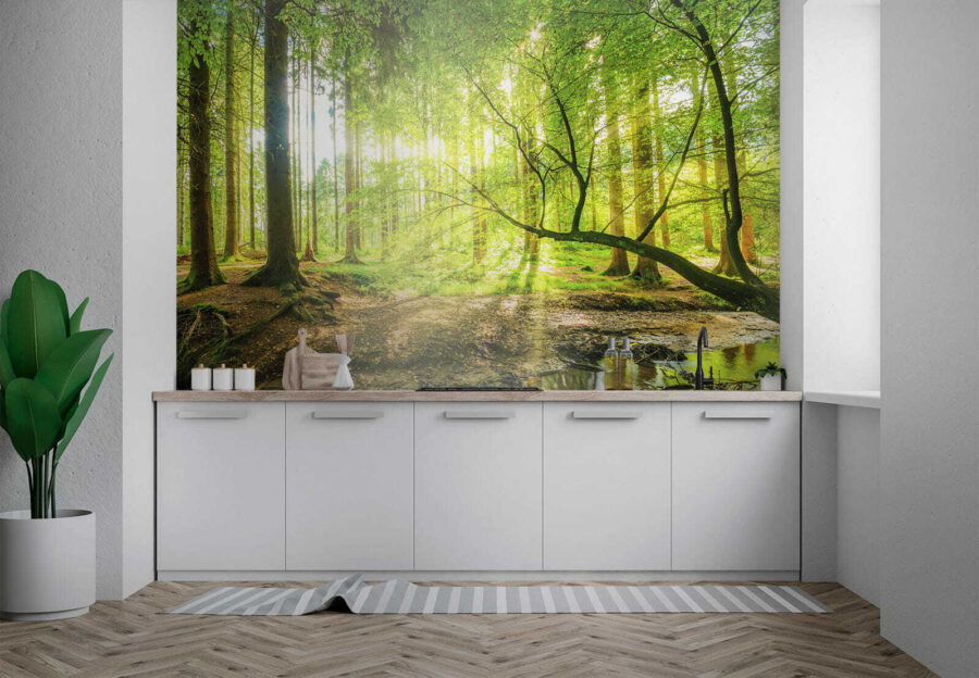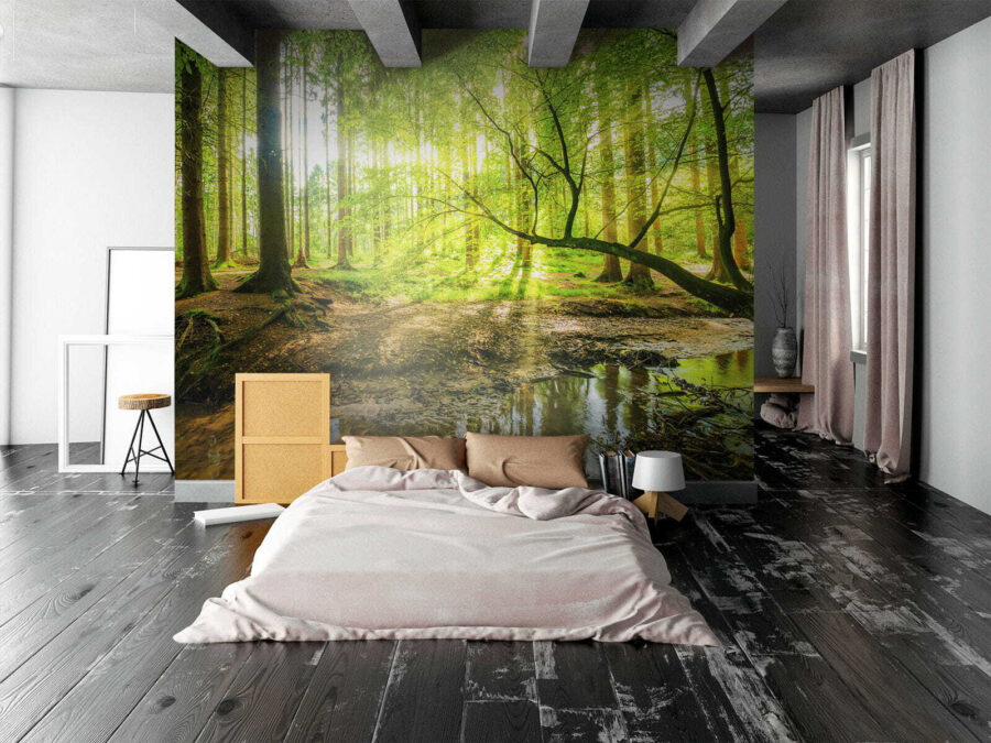 Adéntrese en una escapada de ensueño con el mural “Sunlit Forest with Shimmering Stream”. Imagine transformar su espacio en un sereno refugio en el bosque, donde la luz se filtra a través de los altos árboles y los susurros de la naturaleza llenan el aire. Imagínese este mural en su pared, llevando un trozo de la naturaleza a su salón. Es como tener un trozo de magia de camping, sin los molestos bichos. Cada mirada a los verdes vibrantes y al suave fluir del arroyo puede inspirar una o dos ensoñaciones. ¿Una acogedora manta y un buen libro? Sin duda, una combinación ganadora.