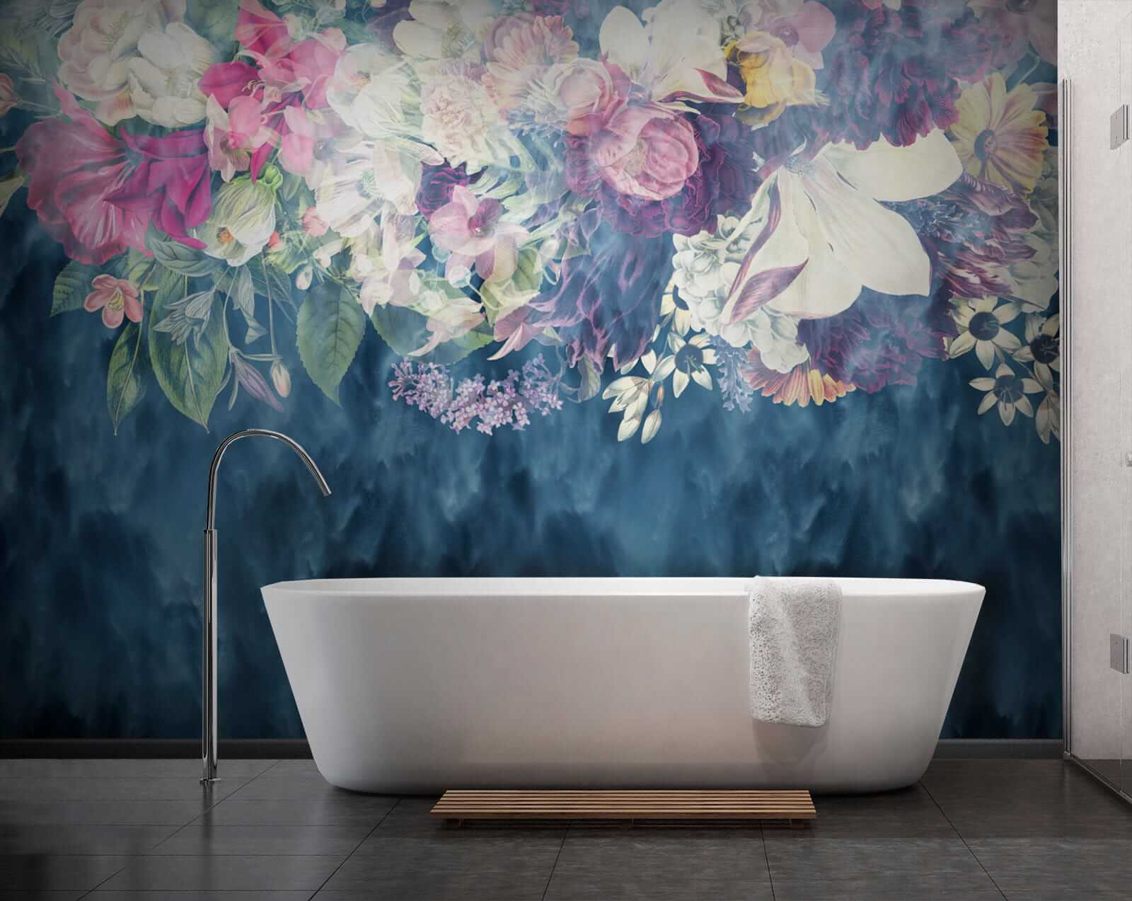1 valoración en Fotomurales Tapiz floral sobre olas azules