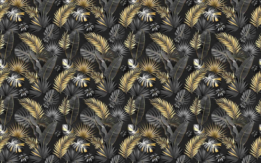 Transforme cualquier habitación en un exuberante oasis con este elegante mural de hojas tropicales. Imagínese entrando en una jungla serena: los ricos patrones y el atrevido follaje crean una atmósfera cautivadora y relajante. El llamativo fondo negro hace que esas hojas vibrantes resalten como si estuvieran saludando.