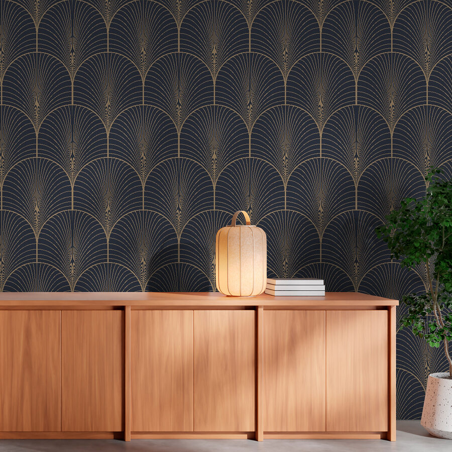 Transforme su espacio con la elegancia de este mural de abanico art decó. Imagínese esto: entrar en una habitación donde sus paredes están adornadas con elegantes curvas y líneas, dando un ambiente sofisticado instantáneo. Es como tener una pieza de arte atemporal que aporta un toque moderno. Casi puedes oír el jazz sonar suavemente mientras te tomas un café, sintiéndote inspirado y animado. Ya sea en un acogedor rincón de lectura o en una moderna sala de estar, este mural añade carácter sin ser abrumador. Es perfecto para iniciar una conversación: ¡espera a que lleguen tus amigos y no puedan evitar admirar el estilo que has creado!