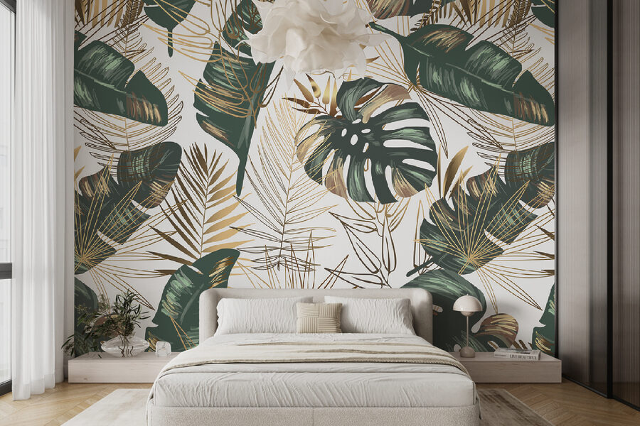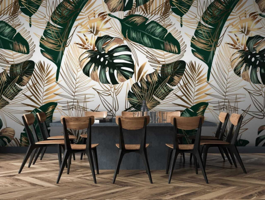 Transforme cualquier habitación en un paraíso tropical con estos vibrantes murales de pared con exuberantes hojas y divertidos motivos abstractos. Imagínese que entra en su salón y se siente como si acabara de aterrizar en una isla con brisa; esos verdes y dorados invitan a la relajación. Ya sea un rincón acogedor para leer o un espacio animado para que se reúnan los amigos, este mural añade el toque perfecto de personalidad. Es como un suave recordatorio de que hay que bajar el ritmo y empaparse de la belleza que te rodea. ¿Quién no querría tomarse una copa y fingir que está de vacaciones en casa?