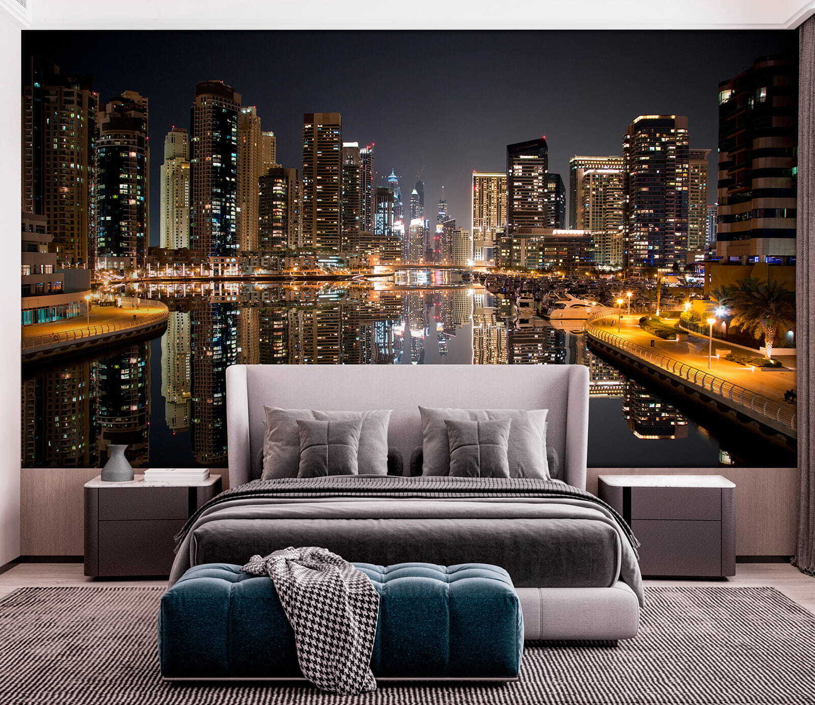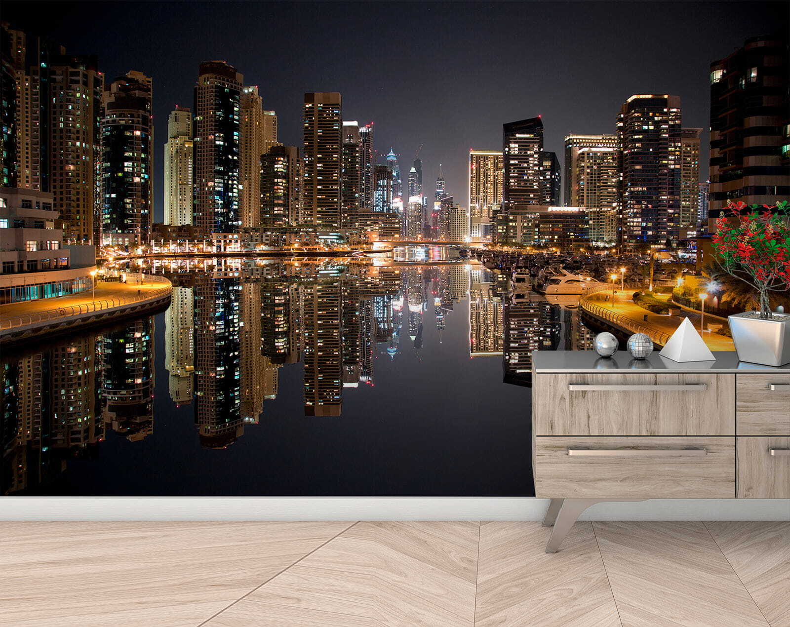 Imagínese contemplar este mural todas las noches: es como asomarse a una bulliciosa ciudad desde el salón de su casa. “Edificio con muchas ventanas de noche” capta ese ambiente sereno y dinámico del paisaje urbano, perfecto para los amantes de la decoración moderna. Los reflejos en el agua añaden un toque de calma, casi haciéndote desear un tranquilo paseo nocturno por la orilla. Tiene esa mezcla de arquitectura y un poco de misterio: ¿quién vive en esas ventanas? Ideal para cualquiera que quiera dar un toque de magia urbana a sus paredes.