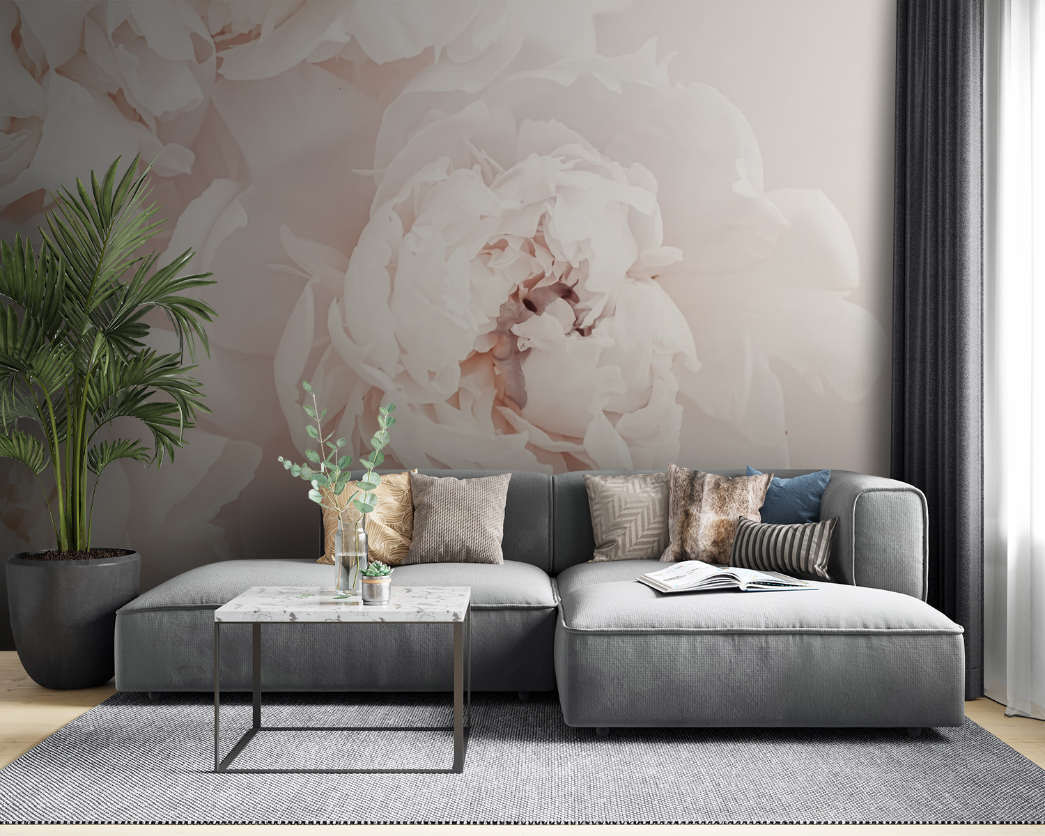 Imagínese que entra en su habitación y ve esto: grandes y suaves flores de peonía, que se abren sólo para usted. El mural de pared “White Peony Blooms Softly Unfurl” de nuestra colección Flowers es como tener un trozo de un hermoso jardín en la pared. Es perfecto para cualquiera que ame la naturaleza pero no quiera tener que regar las plantas. Los pétalos blancos de ensueño aportan un ambiente fresco y relajante a cualquier espacio: es como un suave abrazo de la Madre Naturaleza. Perfecta para un dormitorio, un salón o incluso un rincón tranquilo para pasar un rato conmigo. Es relajante, elegante y muy agradable a la vista. Puede que te quedes pensativo mirándola y te sientas un poco más en paz. Además, es un gran telón de fondo para todos esos momentos acogedores y conversaciones que tendrás frente a él. Deja que tus paredes florezcan, ¡sin necesidad de ser jardinero!