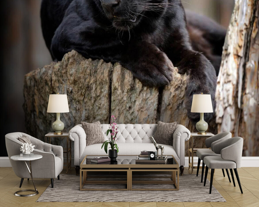 Bring a touch of the wild indoors with the “Black Panther Lying on a Tree Stump” mural. This striking piece captures a moment of pure elegance, where a sleek black panther lounges like it owns the place—because, let’s be honest, it probably thinks it does. Imagine the atmosphere it’ll create in your space, like you’ve got your own little piece of the jungle right at home. Friends will stroll in, do a double-take, and suddenly feel like they’ve entered an exclusive wildlife sanctuary. Perfect for a cozy reading nook or a daring living room—it’s an easy conversation starter. Plus, who wouldn’t want a bold feline friend overseeing their daily shenanigans? Just be prepared to share the spotlight!
