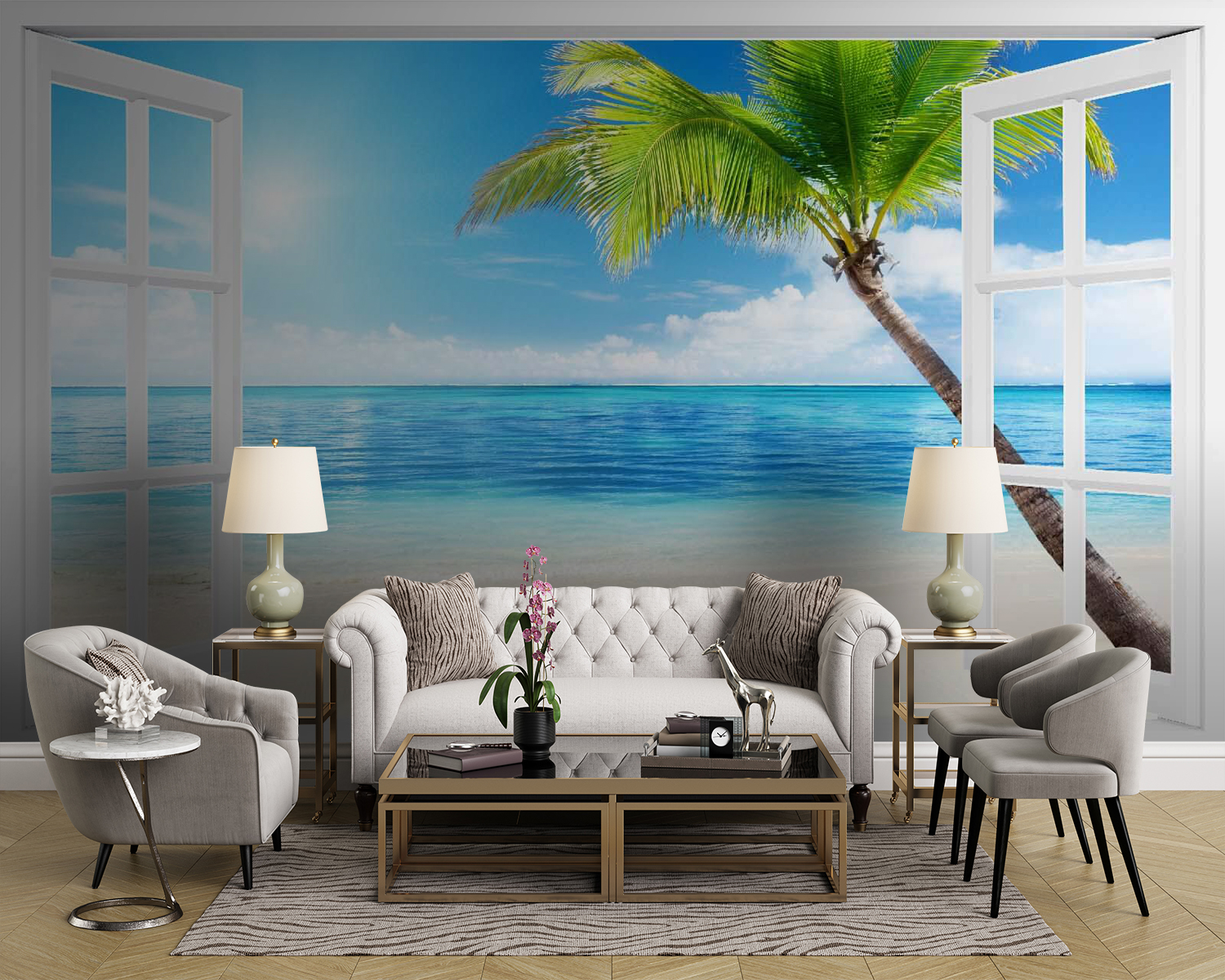 Transforme cualquier habitación en una escapada soleada con este mural “Puerta abierta a la playa”. Imagine entrar en su espacio y sentir al instante esa brisa tropical, sus preocupaciones alejándose como la marea. Las vibrantes olas y el balanceo de la palmera crean una escapada serena en su propia casa. Es perfecto para ese acogedor rincón de lectura o para una animada habitación familiar, invitando a soñar despierto y a sentir la playa durante todo el año. Imagínese una tarde tranquila, tomando una bebida refrescante, mientras el sol le calienta el alma. Este mural no es sólo decoración; es una invitación a relajarse y escapar, sin necesidad de billete.