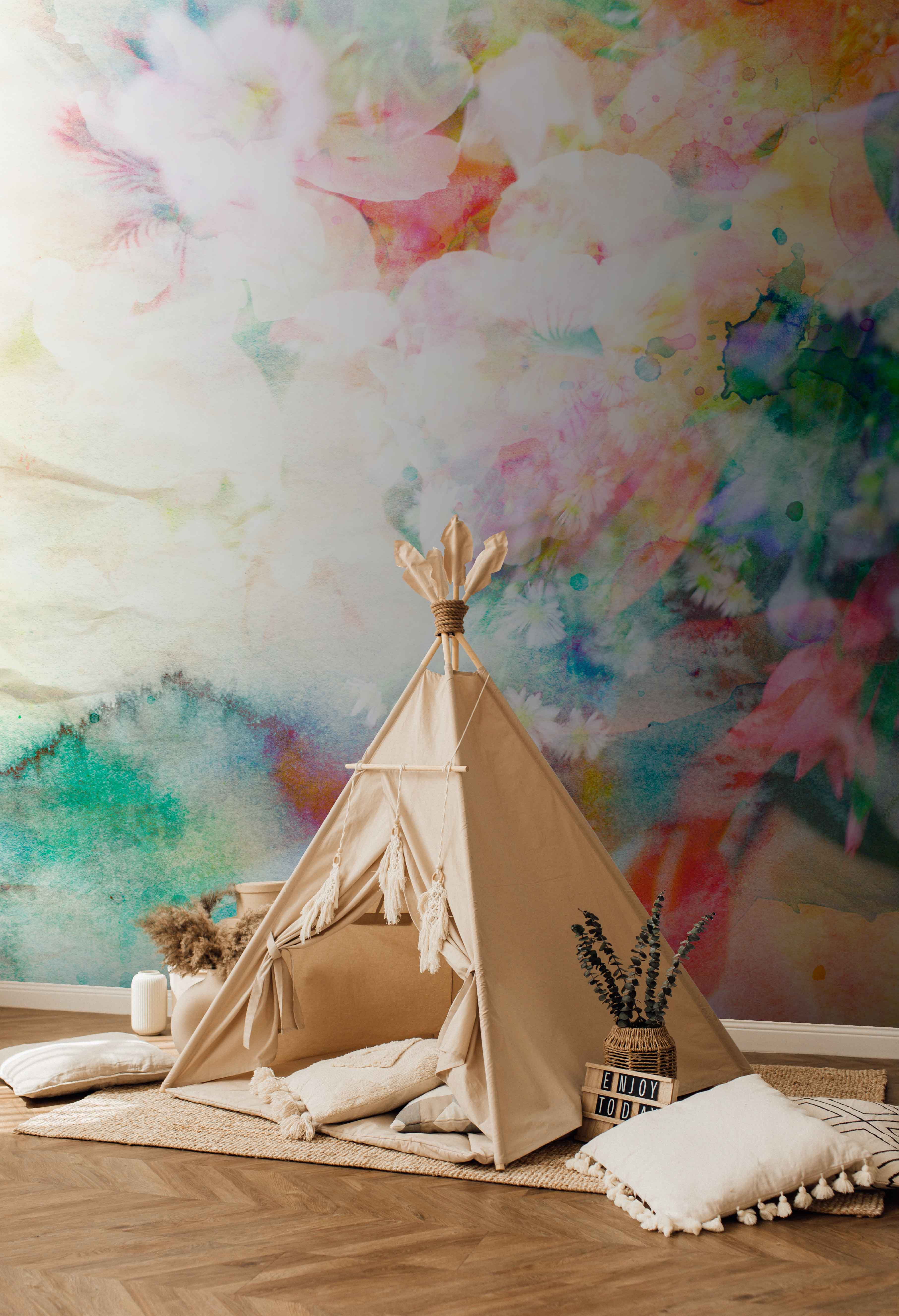 ¡Ilumina cualquier estancia con este impresionante mural con coloridas pinturas florales! Es como entrar en un jardín primaveral, incluso en pleno invierno. Imagínate tomando un café, rodeado de vibrantes flores que te hacen sentir cálido y feliz por dentro. Los suaves remolinos de color crean una atmósfera de ensueño, perfecta para relajarse o crear el ambiente ideal para una acogedora velada. No es solo papel pintado, es un toque de alegría en tu pared, que invita a sonreír y tal vez incluso a soñar despierto. ¿Quién no querría tener su propio jardín personal? Perfecto para cualquier espacio, desde un rincón acogedor hasta una sala de estar llena de vida.