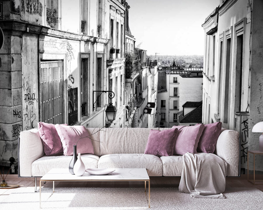 Sumérgete en el encantador ambiente de la vida urbana con este impresionante mural. Una escena callejera aporta una sensación acogedora, con edificios pintorescos y una farola vintage, un dulce guiño a esos paseos vespertinos cuando el sol se pone en el momento justo. Es casi como asomarse a un callejón escondido donde se desarrollan historias. Imagina tomarte un café, perdido en tus pensamientos, mientras el mundo pasa ante tu ventana. Perfecto para un salón o un rincón acogedor, este mural aporta calidez y un toque de aventura a cualquier espacio. ¿Quién no querría escapar a este pequeño rincón mágico de la ciudad?