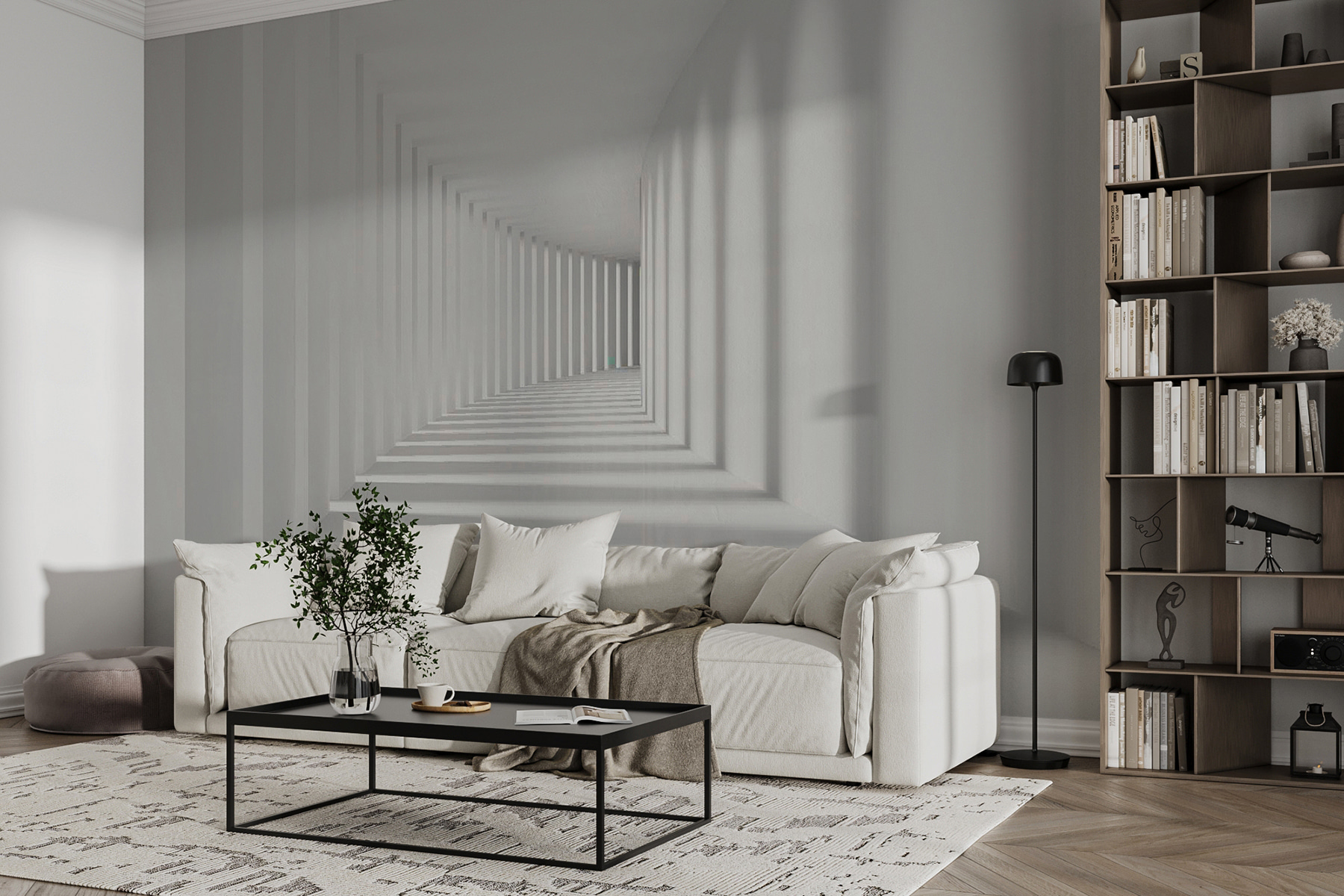 2 valoraciones en Fotomurales Pasillo blanco con sombras en la pared