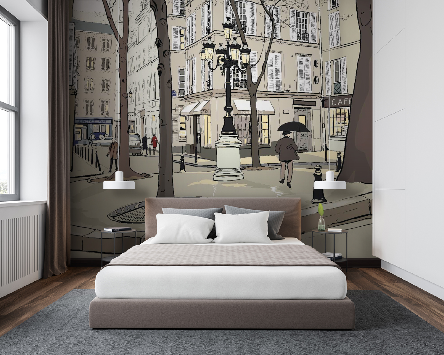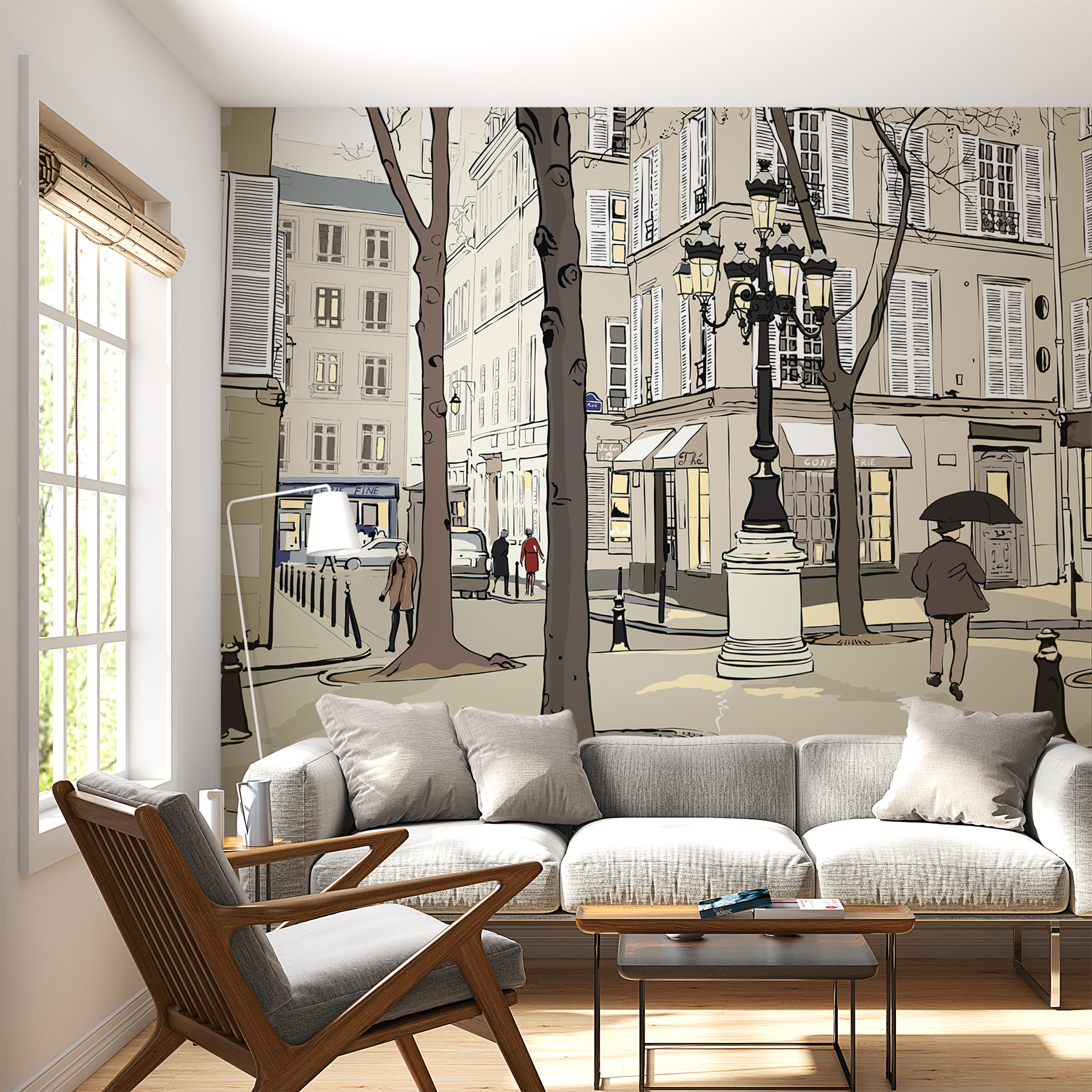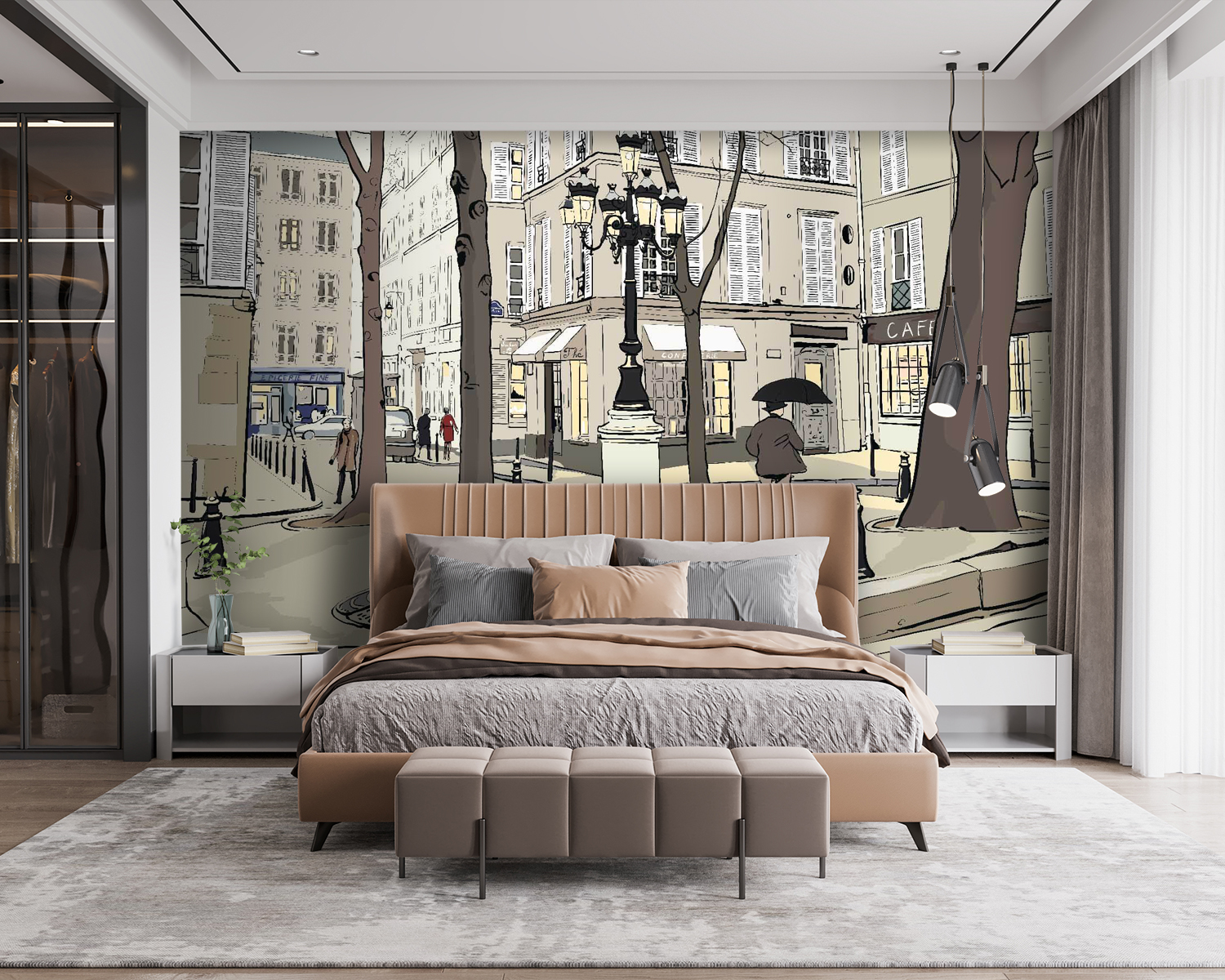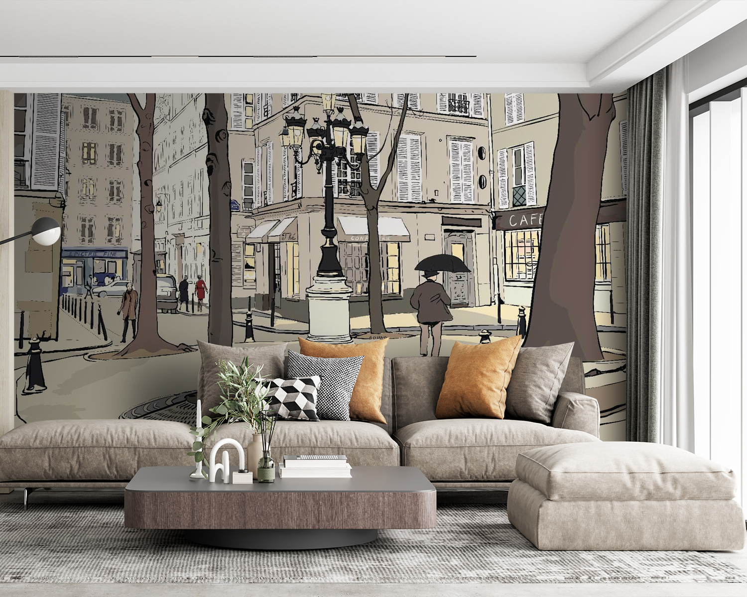 Transforme una pared lisa en una animada escena con este caprichoso mural que capta la esencia de la vida urbana. Imagínese paseando por una calle encantadora, flanqueada por altos árboles y pintorescos cafés, donde cada mirada revela algo encantador. La suave paleta de colores aporta un ambiente acogedor, por lo que es perfecto para una sala de estar o un espacio creativo. Imagínese el café de la mañana con este telón de fondo, o un ambiente lúdico en la habitación de un niño. Es como invitar a un trocito de la ciudad a tu casa: peculiar, conmovedor y lleno de historias. Es algo más que un mural: es una experiencia que espera desarrollarse con cada momento compartido.
