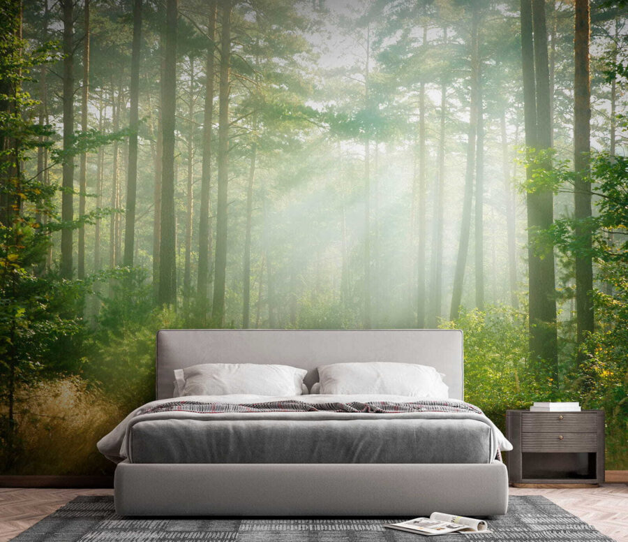 Transforma tu espacio en una serena escapada al bosque con este mural en el que la luz del sol se cuela entre los altos árboles del bosque. Imagina que entras en un bosque iluminado por el sol cada vez que entras en la habitación: un sueño, ¿verdad? El suave resplandor de la luz que se filtra a través de las hojas aporta calidez y calma, por lo que es perfecto para un acogedor rincón de lectura o una animada zona de estar. Es como un soplo de aire fresco sin los molestos insectos. Ya sea tomando el té o soñando despierto, este mural invita a momentos de paz e inspiración. Decora tus paredes y deja que la magia de la naturaleza entre en ellas.