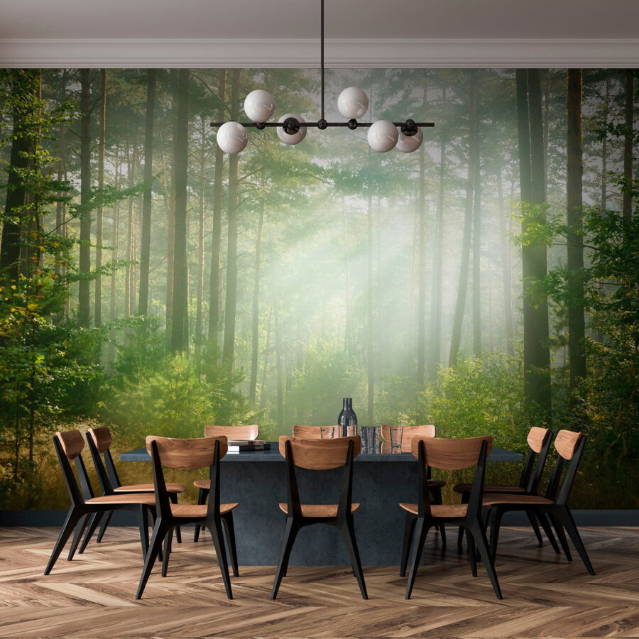 Fotomurales Fotomurales La luz del sol se cuela entre los árboles del bosque (SKU: u56162)