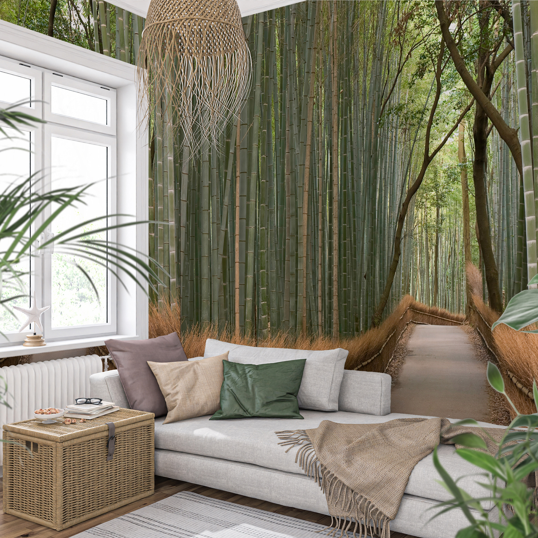 Imagine adentrarse en un sereno camino de bambú cada vez que se asome a su pared. Este mural, titulado “Camino con valla de bambú”, introduce sin esfuerzo la naturaleza en su habitación. Es perfecto para los amantes de la decoración única. El alto y verde bambú y la encantadora valla casi te hacen sentir como si estuvieras caminando por un tranquilo bosque. Perfecto para un poco de zen en tu ajetreada vida, o simplemente para iniciar una buena conversación cuando vengan los amigos. Ideal para salones, dormitorios o cualquier lugar en el que necesites evadirte un poco, ¡sin salir de casa!