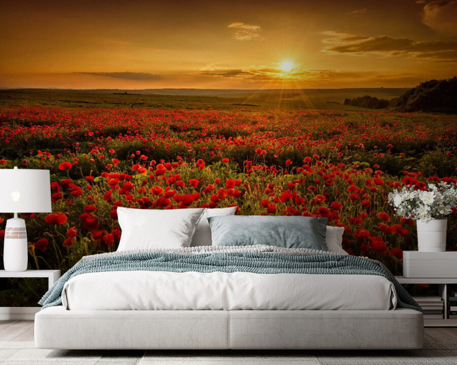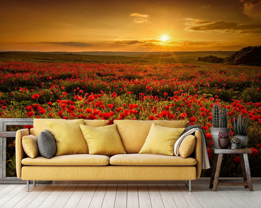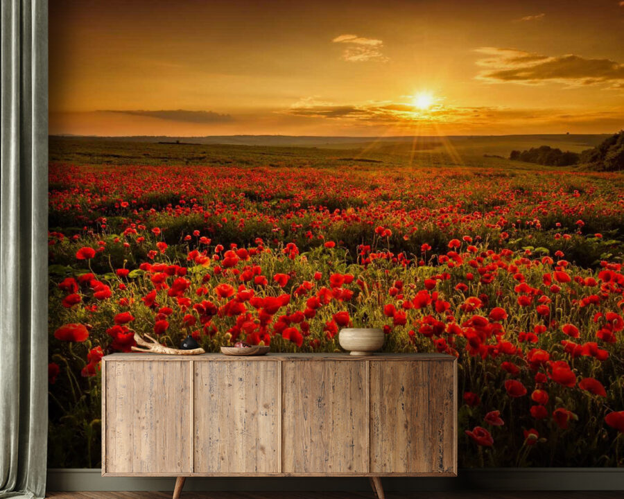 Transforme cualquier espacio con el cautivador mural “Campo de flores rojas”. Imagínese entrar en un campo de amapolas iluminado por el sol, donde las flores rojas vibrantes bailan con la brisa. Este mural lleva un toque de naturaleza a sus paredes, creando un ambiente acogedor y alegre. Imagínese mañanas acogedoras tomando café, sintiéndose como si estuviera rodeado de un paraíso en flor. Es algo más que decoración; es una pequeña escapada del ajetreo diario. Perfecto para salones o incluso rincones creativos, seguro que despierta sonrisas y conversaciones cálidas. Deja que la belleza de la naturaleza te alegre el día.