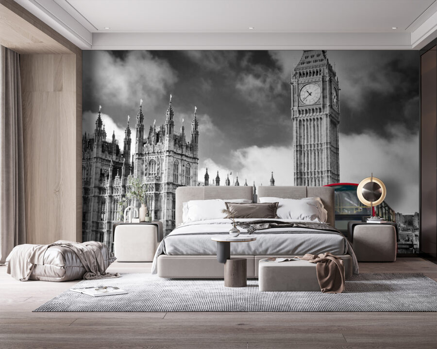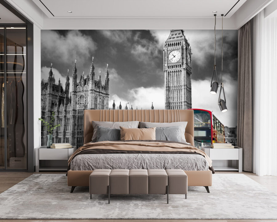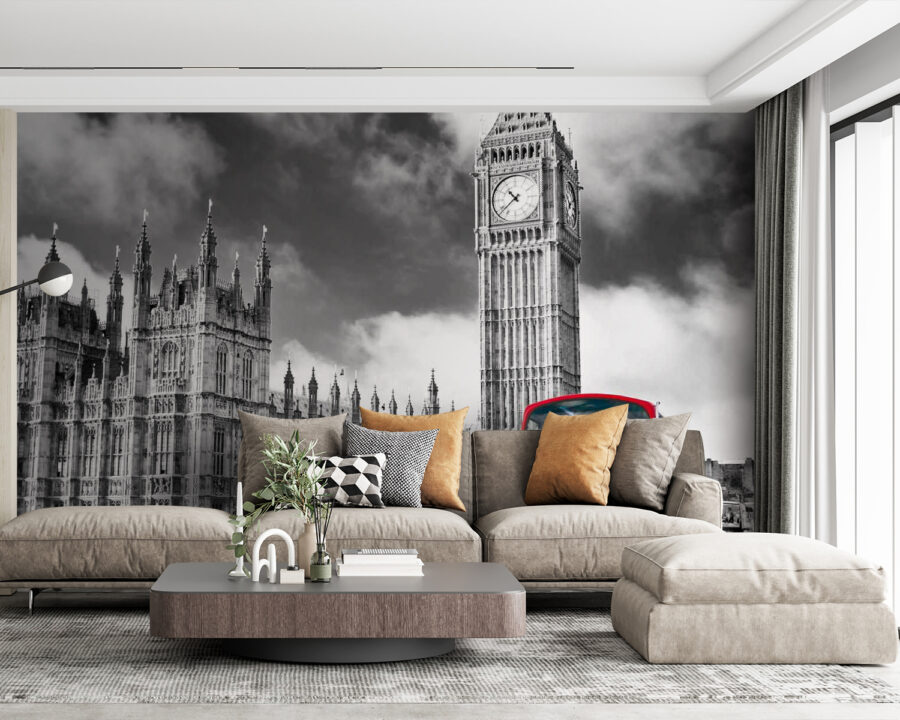 Transforma tu espacio con este impresionante mural que muestra un vibrante autobús rojo de dos pisos pasando junto a una majestuosa torre del reloj. ¡Sí, prácticamente te está invitando a tomar una taza de té! La combinación de la arquitectura en blanco y negro y ese toque de rojo parece una postal de Londres, justo en tu pared. Imagina a tus amigos entrando, con los ojos iluminados por la nostalgia o la curiosidad. No es solo decoración, es un tema de conversación que da pie a historias sobre aventuras en el extranjero. ¡Prepárate para disfrutar cada día del ambiente de la ciudad! Perfecto para cualquiera que adore un toque de fantasía y una pizca de encanto.