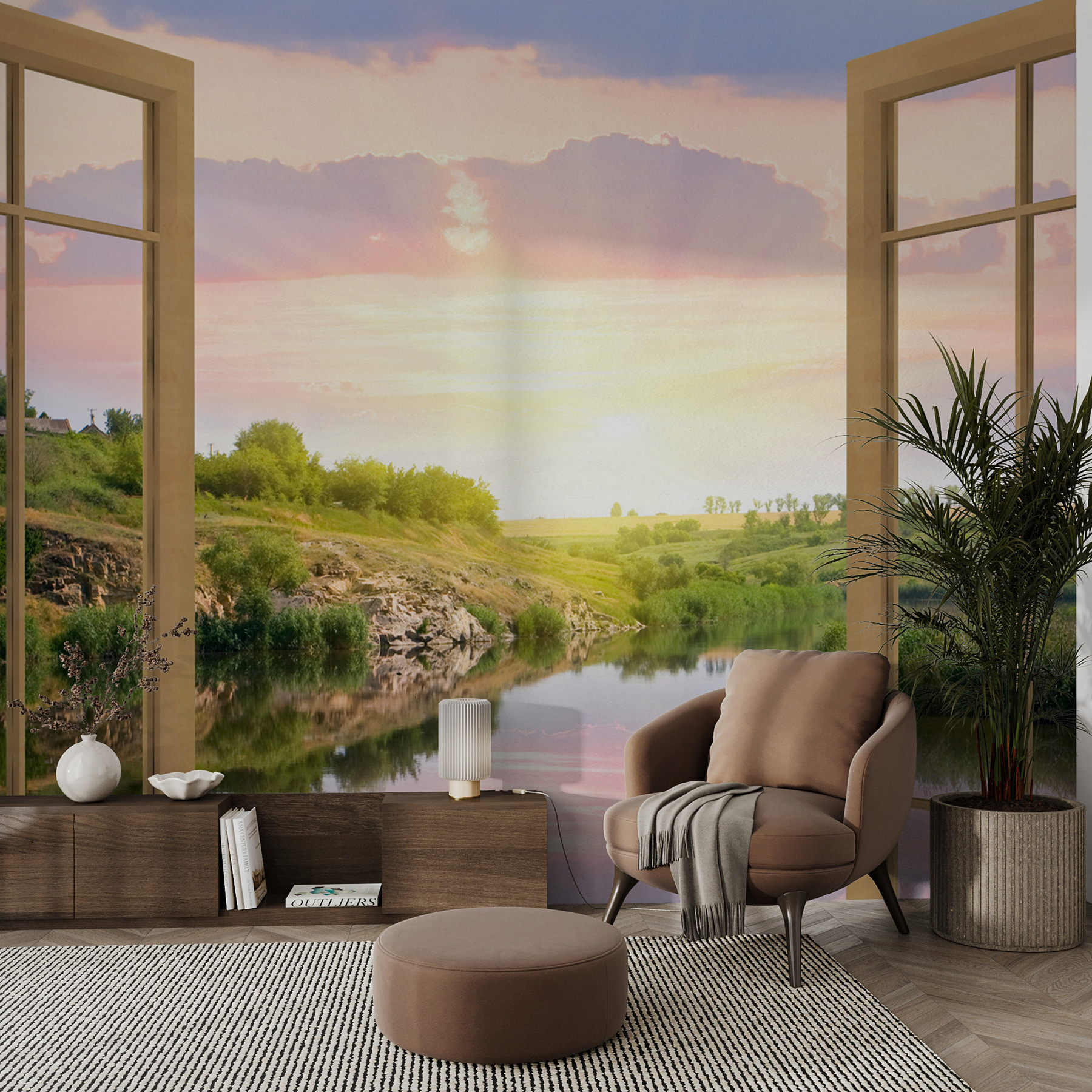 ¿Alguna vez ha soñado con tener un portal mágico en casa? Este mural de pared “Vista de un río desde una ventana” es prácticamente uno. Imagínese despertarse cada día con esta impresionante escena: un apacible río que fluye entre exuberante vegetación y un cielo pintado con suaves tonos pastel. Es como escaparse a la naturaleza sin levantarse del sofá. Perfecto para los que anhelan un poco de tranquilidad después de un largo día. Tu espacio parecerá más abierto, como si hubieras añadido una ventana más con una vista siempre encantadora. Y seamos sinceros, ¿a quién no le apetece ese ambiente tranquilo y zen? Ideal para cualquier habitación: salón, dormitorio, despacho… ¡lo que quieras!
