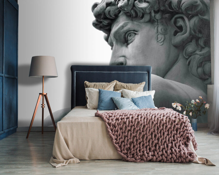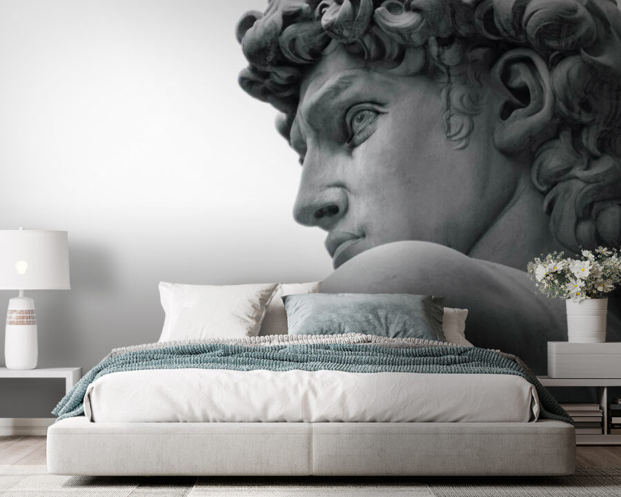 Este mural de la estatua de un hombre es como llevar una pieza de un gran museo a su propio espacio. Imagínese tener este rostro llamativo y atemporal vigilando su sala de estar: un tema de conversación instantáneo, ¿verdad? Es perfecto para aquellos que anhelan un poco de elegancia clásica pero en un entorno fresco y moderno. Los detalles son tan vívidos que casi se puede sentir la fresca suavidad del mármol. Podría transformar totalmente una pared normal en un impresionante punto focal. Cada vez que lo vea, se sentirá un poco más culto y sofisticado.