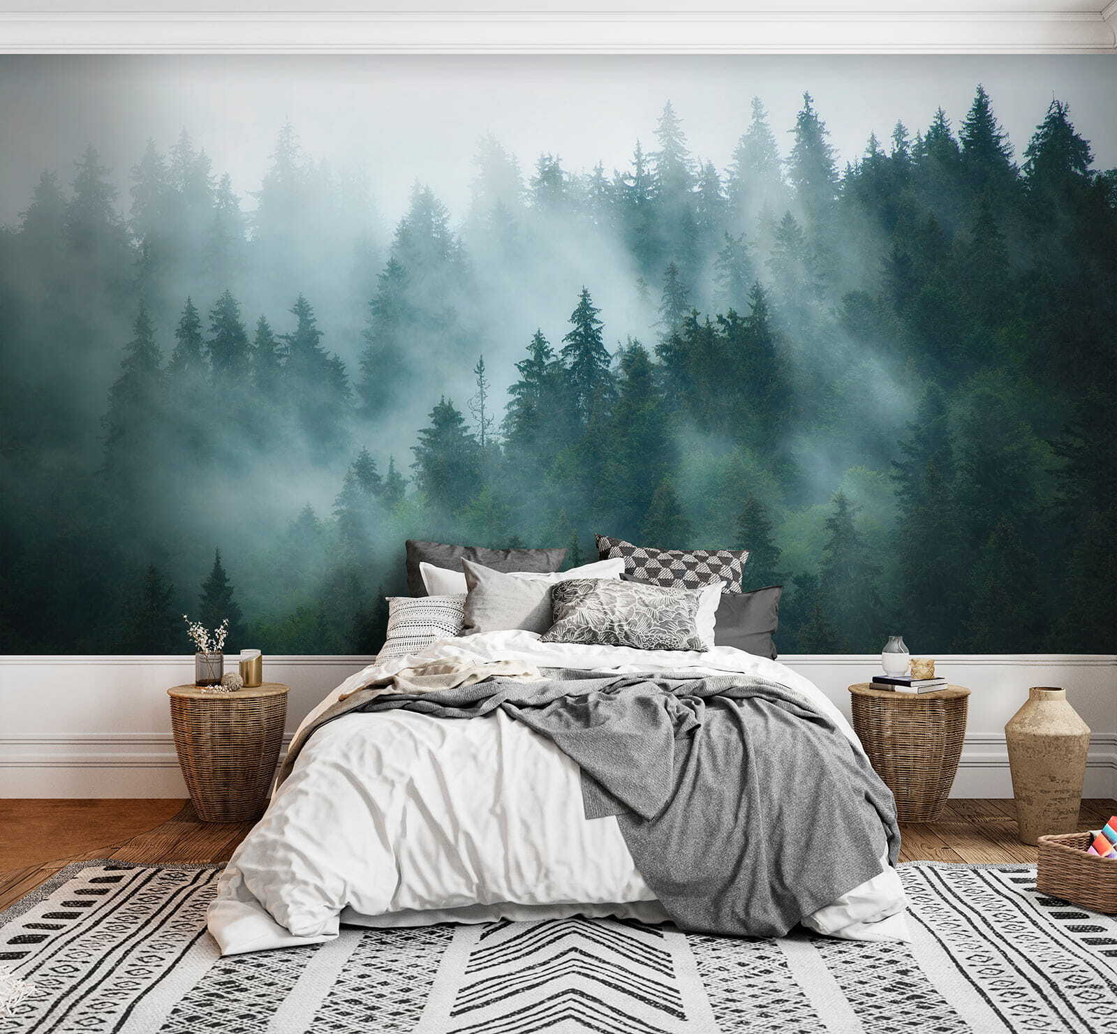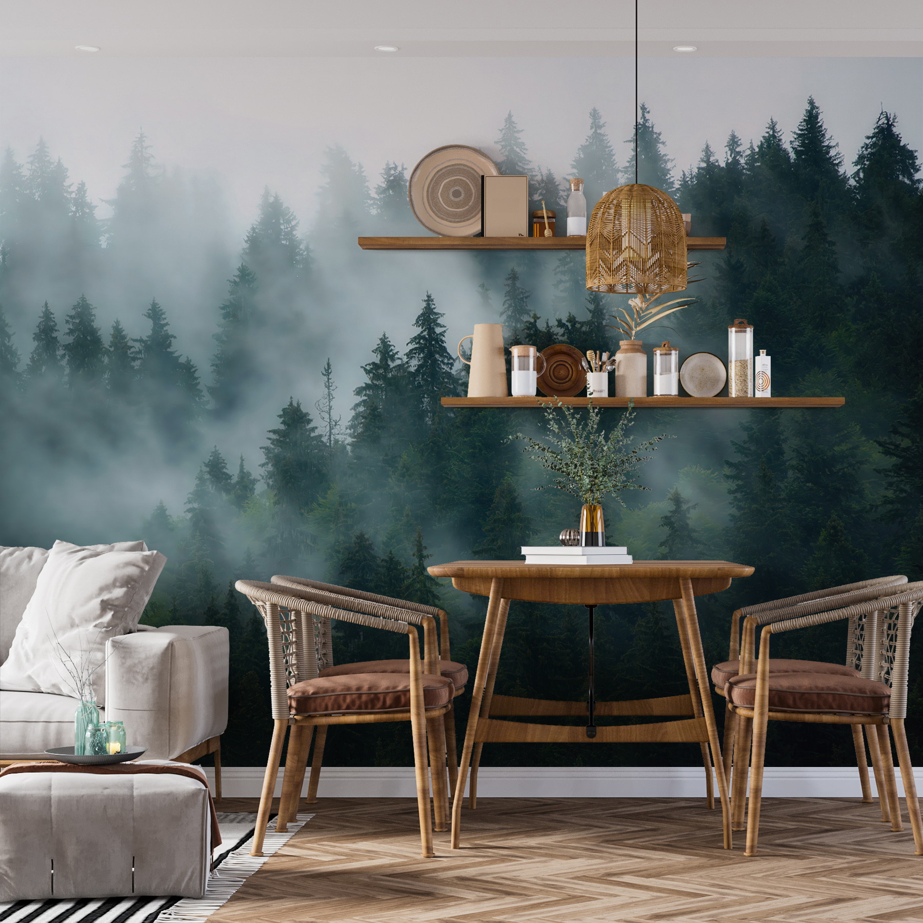 Imagine entrar en una habitación y sentir que se adentra en un bosque místico en una mañana de niebla. Eso es exactamente lo que este mural “Grupo de árboles en la niebla” aporta a su espacio. Tiene esas vibraciones susurrantes: árboles envueltos en una niebla suave y brumosa que hace que todo parezca un poco más de ensueño. Ideal para cualquiera que ame la naturaleza o simplemente necesite un poco de calma en su ajetreada vida.
