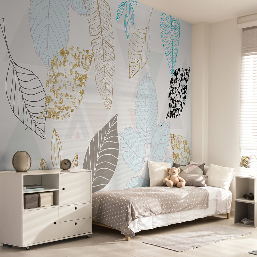 Conozca su nueva decoración de pared favorita: “Murales de pared Hojas perfiladas de colores sobre dibujo”. Este mural es como un abrazo acogedor para sus paredes, que lleva el encanto de la naturaleza al interior. Imagínese que se despierta con una mañana de llovizna, pero su habitación parece un bosque vibrante y relajado. La juguetona mezcla de hojas y alegres estallidos de color puede alegrar hasta el día más aburrido.