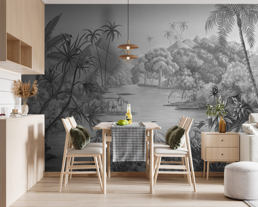 ¿Te sientes aventurero? Este fotomural “Cebras bebiendo agua” es más que una simple decoración: es como asomarse a un oasis secreto de la selva. Imagínese tomando su café matutino mientras las cebras, esas maravillas a rayas tan elegantes, se deleitan junto a una serena charca. No es sólo arte, es una minivacación del ajetreo y el bullicio. Perfecto para añadir un toque salvaje a tu espacio, este mural mezcla las exuberantes vibraciones de los árboles de la selva con el sereno encanto de la fauna africana. Piense en él como un suave empujón a su espíritu aventurero, justo ahí, en su pared, ¡sin necesidad de billete de avión!