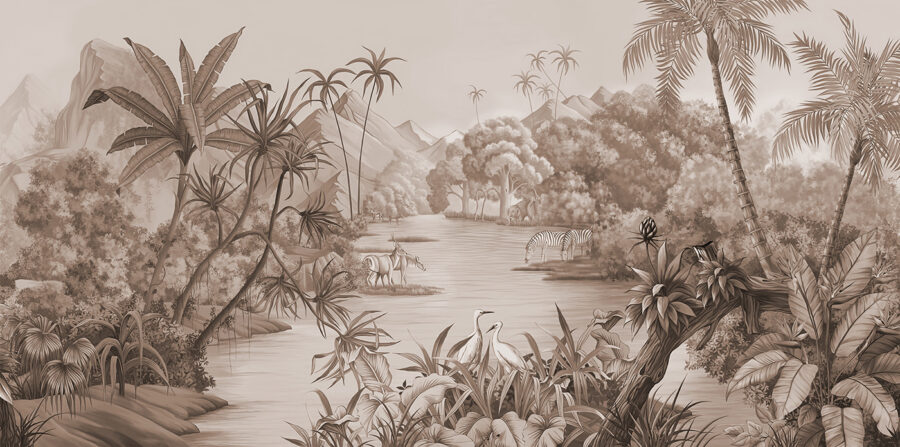 Transforma cualquier habitación en una escapada tropical con este impresionante mural de pared con una vibrante escena selvática. Imagínese descansando con los sonidos de la naturaleza que le rodea, como animales elegantes serpentean a través de un exuberante follaje. Los tonos terrosos de este mural y sus intrincados detalles crean una atmósfera serena, haciendo que cada mirada sea como unas mini-vacaciones. Perfecto para un rincón acogedor o una animada habitación familiar, invita a la calidez y la aventura. Imagínese tomando un café mientras sueña despierto con selvas salvajes: ¿a quién no le gustaría eso? Lleve un trocito de naturaleza al interior de su hogar y vea cómo sus paredes cobran vida.