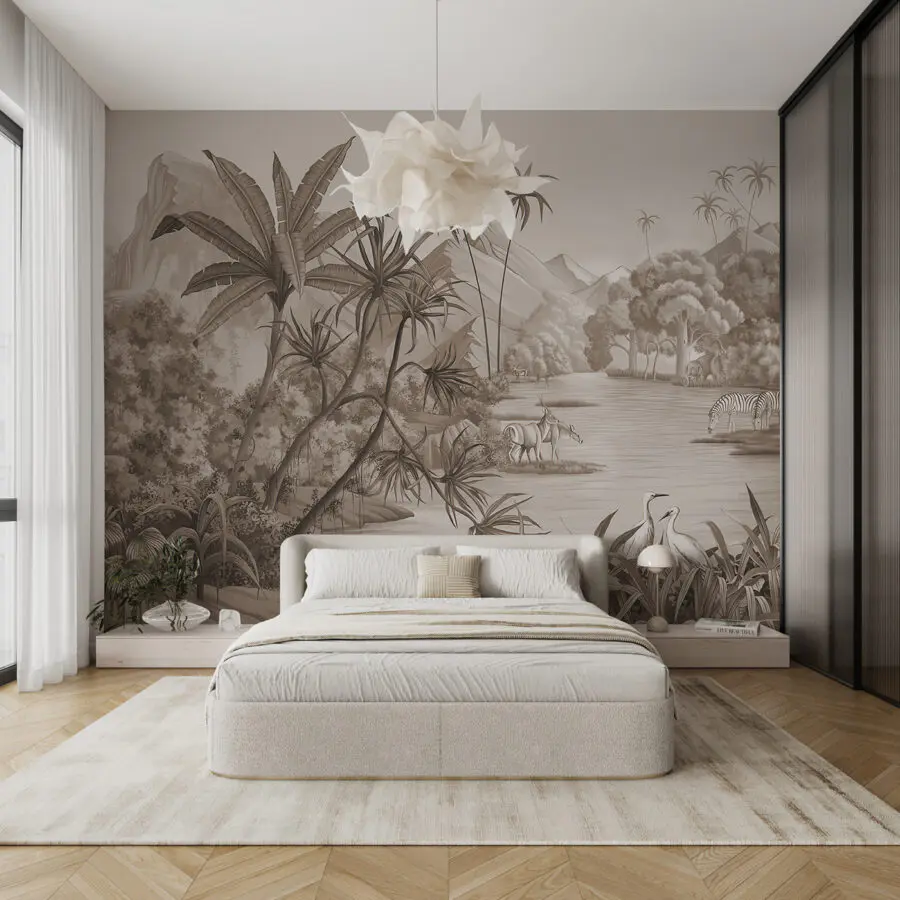 Transforma cualquier habitación en una escapada tropical con este impresionante mural de pared con una vibrante escena selvática. Imagínese descansando con los sonidos de la naturaleza que le rodea, como animales elegantes serpentean a través de un exuberante follaje. Los tonos terrosos de este mural y sus intrincados detalles crean una atmósfera serena, haciendo que cada mirada sea como unas mini-vacaciones. Perfecto para un rincón acogedor o una animada habitación familiar, invita a la calidez y la aventura. Imagínese tomando un café mientras sueña despierto con selvas salvajes: ¿a quién no le gustaría eso? Lleve un trocito de naturaleza al interior de su hogar y vea cómo sus paredes cobran vida.