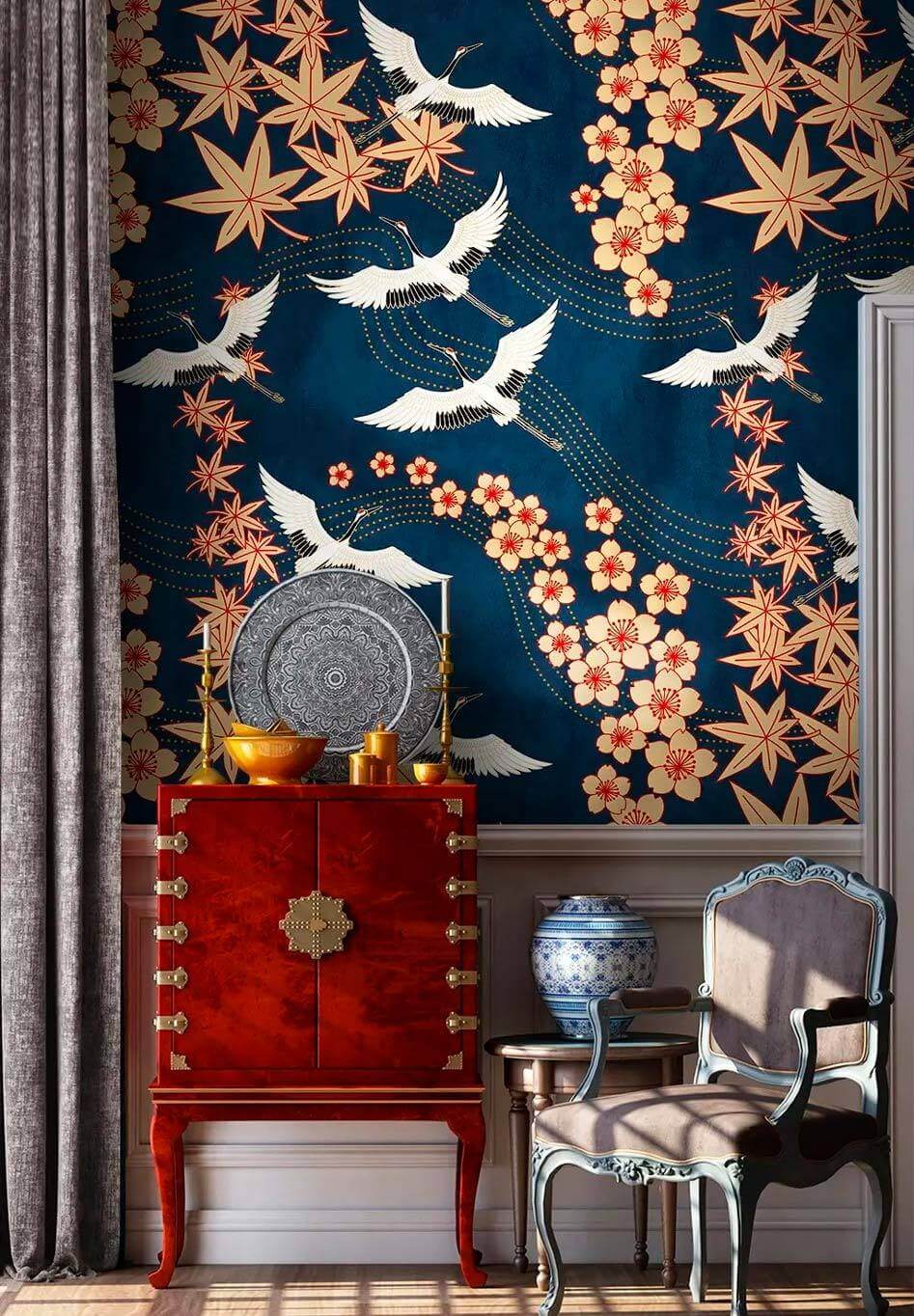 Imagine stepping into a serene Japanese garden without leaving your living room. This “Wall Murals Pattern of Flowers and Birds” brings that calming vibe right to your walls, with graceful cranes soaring through vibrant leaves and blossoms. It’s like nature decided to throw a party in your home—and who wouldn’t love that?