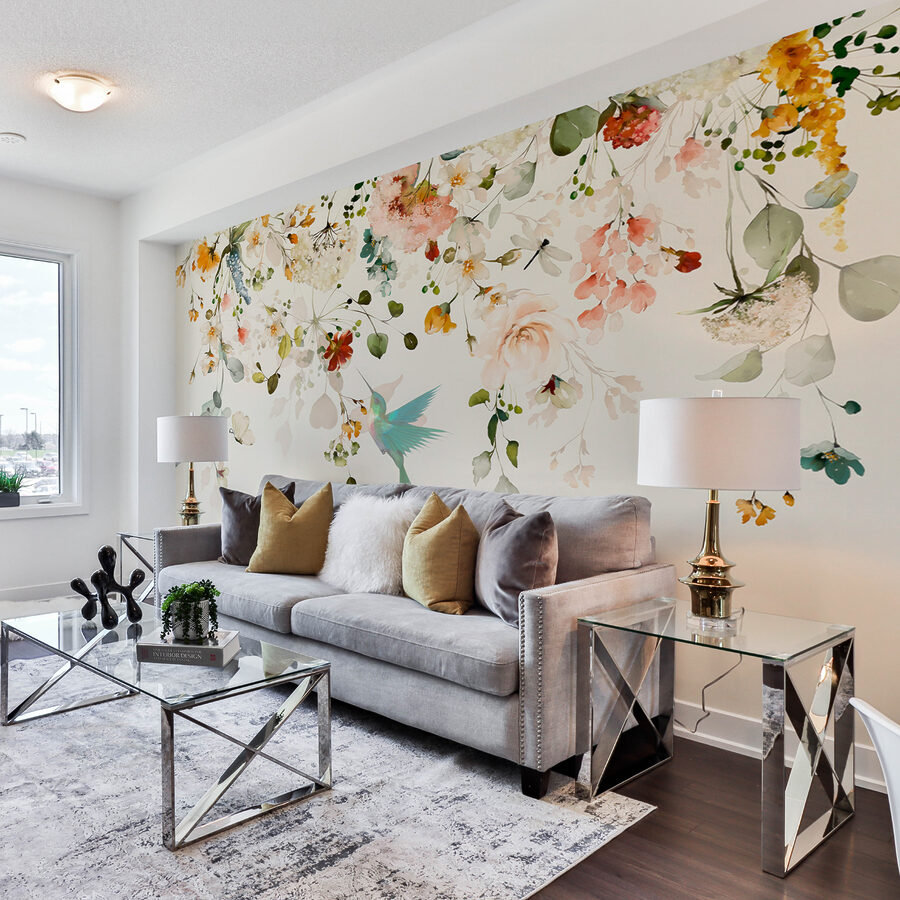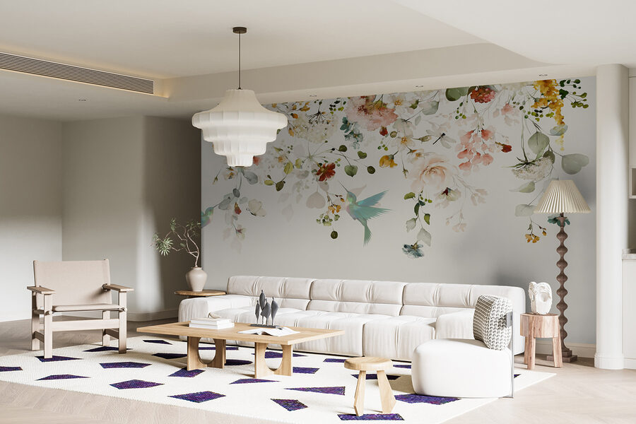 Este mural tiene una belleza serena que es simplemente… relajante. ¿Esos tonos pastel y detalles intrincados? Transmite una sensación acogedora y elegante a la vez. Además, ese colibrí es tan bonito y caprichoso, ¿verdad? Es casi como si pudieras oír el zumbido de sus pequeñas alas. Tanto si te acurrucas con un libro como si charlas con tus amigos, este mural crea un ambiente maravillosamente tranquilo.