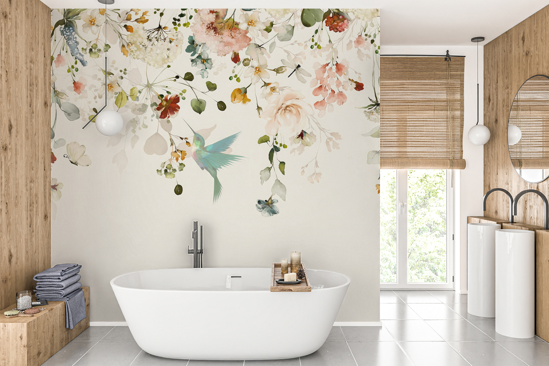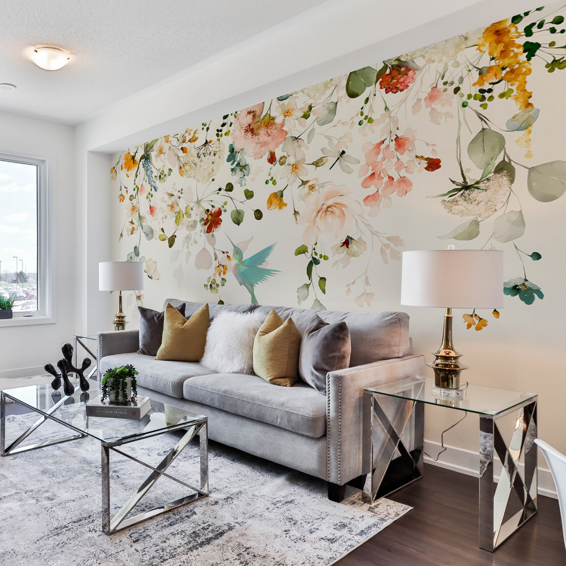 Este mural tiene una belleza serena que es simplemente… relajante. ¿Esos tonos pastel y detalles intrincados? Transmite una sensación acogedora y elegante a la vez. Además, ese colibrí es tan bonito y caprichoso, ¿verdad? Es casi como si pudieras oír el zumbido de sus pequeñas alas. Tanto si te acurrucas con un libro como si charlas con tus amigos, este mural crea un ambiente maravillosamente tranquilo.