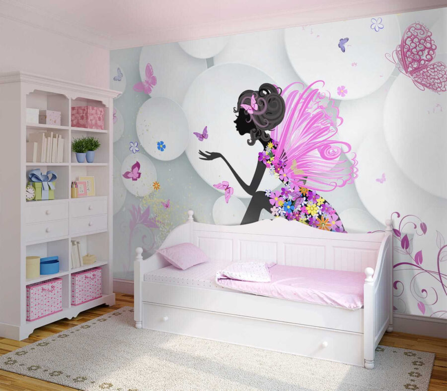Hola a todos ¿Quieres añadir un toque de fantasía a la habitación de tu hija? Echa un vistazo a este precioso mural de pared, acertadamente llamado “Plato blanco con una flor azul”. Es como un cuento de hadas convertido en arte: vibrantes mariposas revoloteando alrededor de un hada de ensueño. Imagina que tu pequeño ve esto cada mañana, ¡es suficiente para hacer sonreír a cualquiera!