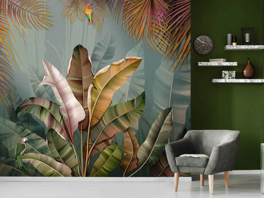 Imagínese entrar en una habitación y sentir que acaba de entrar en una selva exuberante y vibrante: esa es la magia del mural de pared “Selva tropical con hojas vibrantes”. Está repleto de vida y color, desde los verdes intensos hasta los estallidos de rosas y naranjas. Perfecto para añadir un toque tropical a su espacio, este mural es como unas minivacaciones cada vez que lo mira. ¿No puede oír el susurro de las hojas y la lejana llamada de los pájaros exóticos? Es alegre pero también relajante, como tener la tranquila energía de la naturaleza envolviendo tus paredes. Ideal para los amantes de una decoración única que susurre aventura y relajación. Además, piensa en ello como un tema de conversación: ¡no todos los días puedes decir que tu salón tiene una selva! 🌿