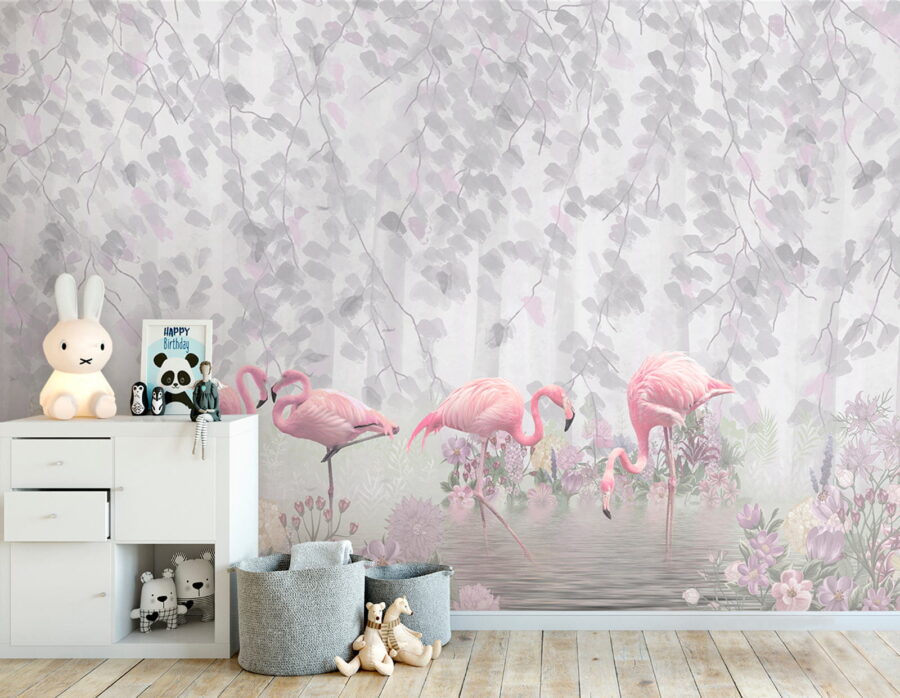 Transforma cualquier espacio con este precioso mural que muestra un grupo de flamencos rosas descansando con elegancia junto a un tranquilo estanque, rodeados de delicadas flores. Imagina la calidez que aporta, como un suave abrazo en un día soleado. Es como tomarse unas pequeñas vacaciones cada vez que entras en la habitación. Los tonos rosas de ensueño y las suaves vibraciones florales crean una atmósfera tranquila, lo que lo hace perfecto para una acogedora sala de estar o un relajante dormitorio. Además, ¡es un tema de conversación seguro! ¿Quién no querría charlar sobre estos fabulosos amigos emplumados? Añade este mural y deja que tus paredes cuenten una historia vibrante que haga que todos se sientan como en casa.