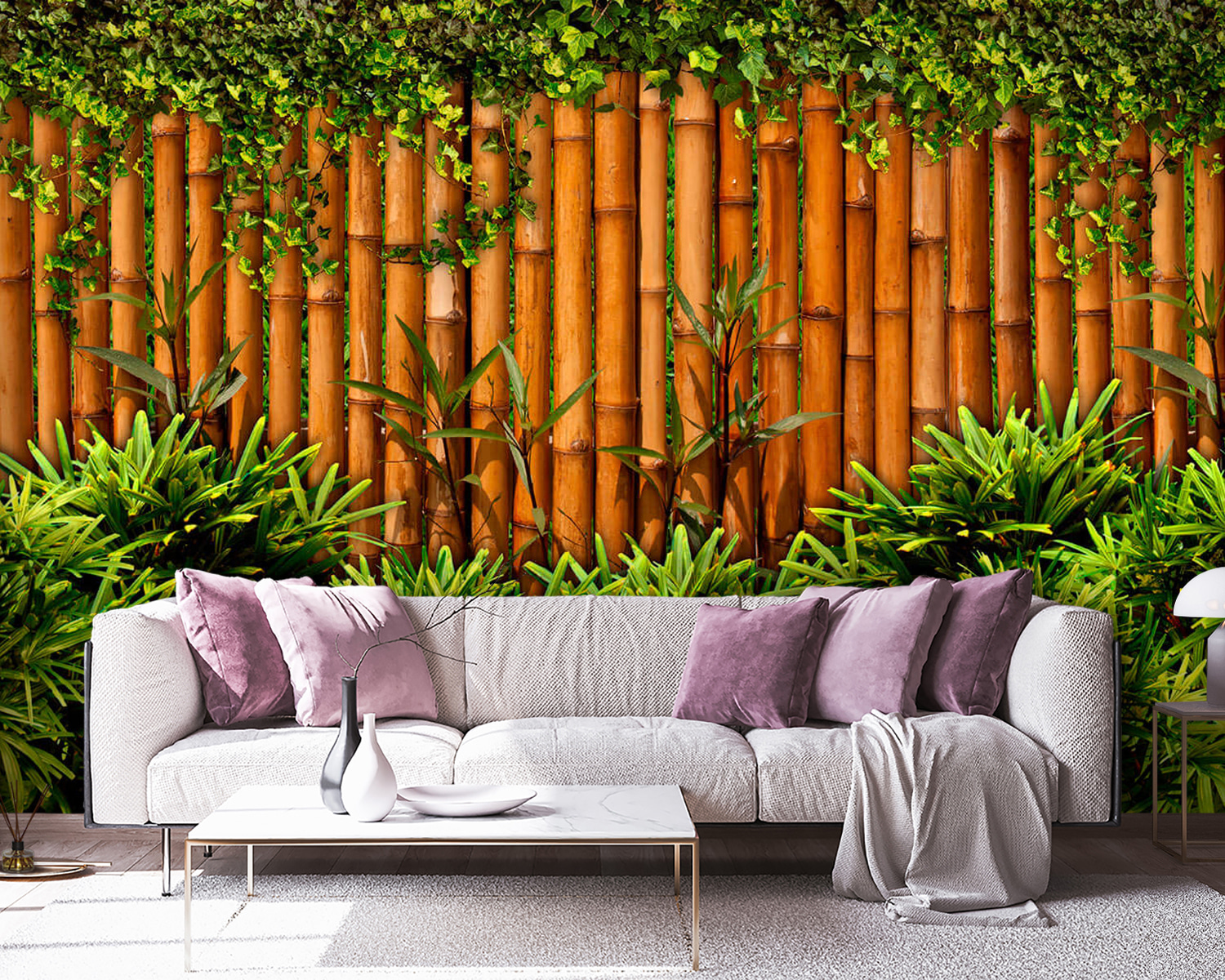 Transforme su espacio en un oasis tropical con este encantador mural de pared con una valla de bambú cubierta de exuberantes plantas verdes. Es como llevar un trozo de naturaleza al interior, pero sin los insectos y la humedad. Imagínese tomando su café de la mañana o relajándose después de un largo día, mientras se siente rodeado por un relajante ambiente de jardín. Los colores vivos y los elementos naturales crean un telón de fondo relajante perfecto para cualquier habitación. Ya sea en el salón, en el dormitorio o incluso en un rincón acogedor, este mural invita a una sensación de calidez y serenidad. ¿Quién necesita unas vacaciones cuando puede tener esto?