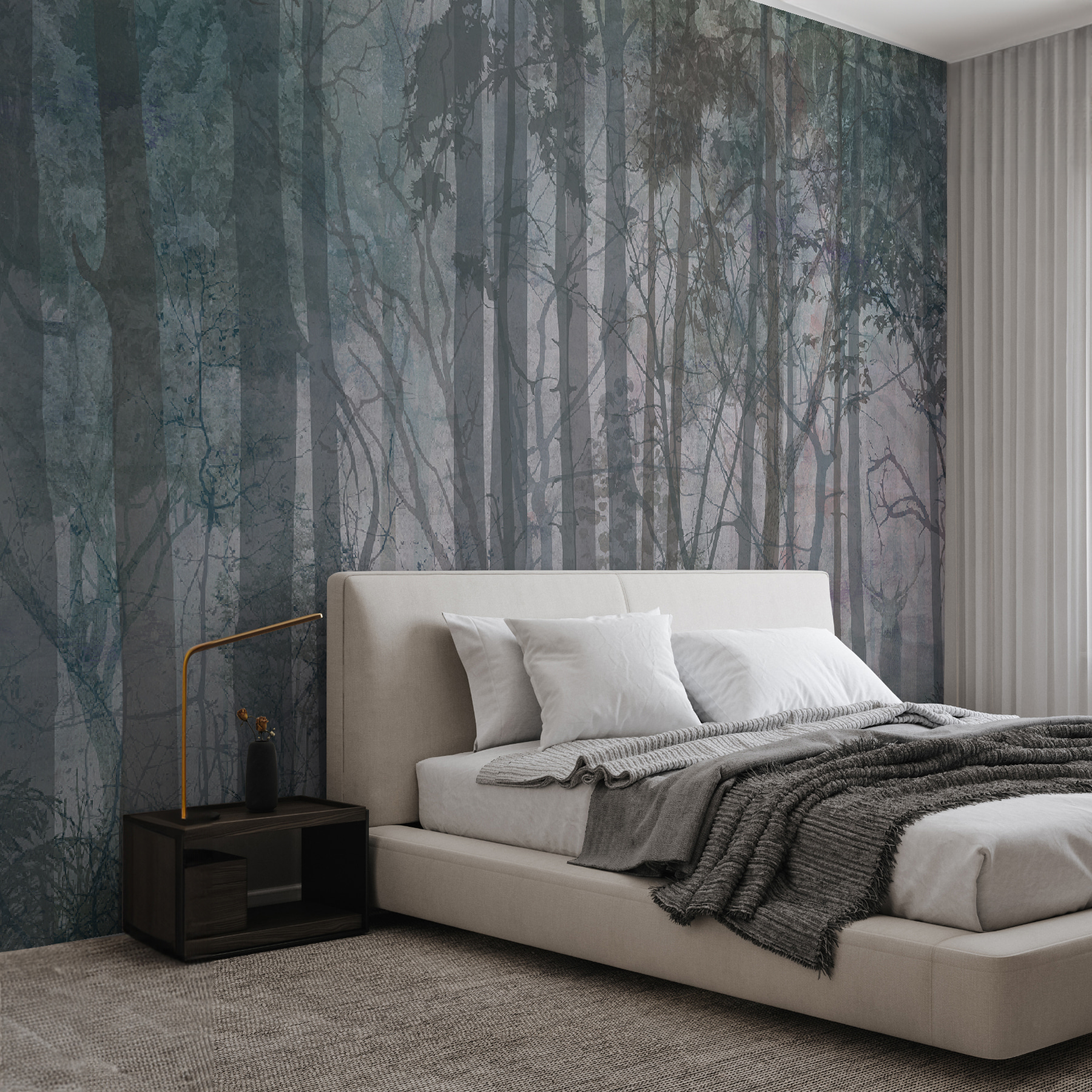 Imagínatelo: Ha tenido un día ajetreado, pero entonces echa un vistazo a este mural y, de repente, se encuentra en este tranquilo bosque. Es una pequeña escapada sin tener que salir de casa. Ya sea en el salón, en el dormitorio o incluso en un acogedor rincón de lectura, este mural transforma cualquier espacio en un apacible refugio.