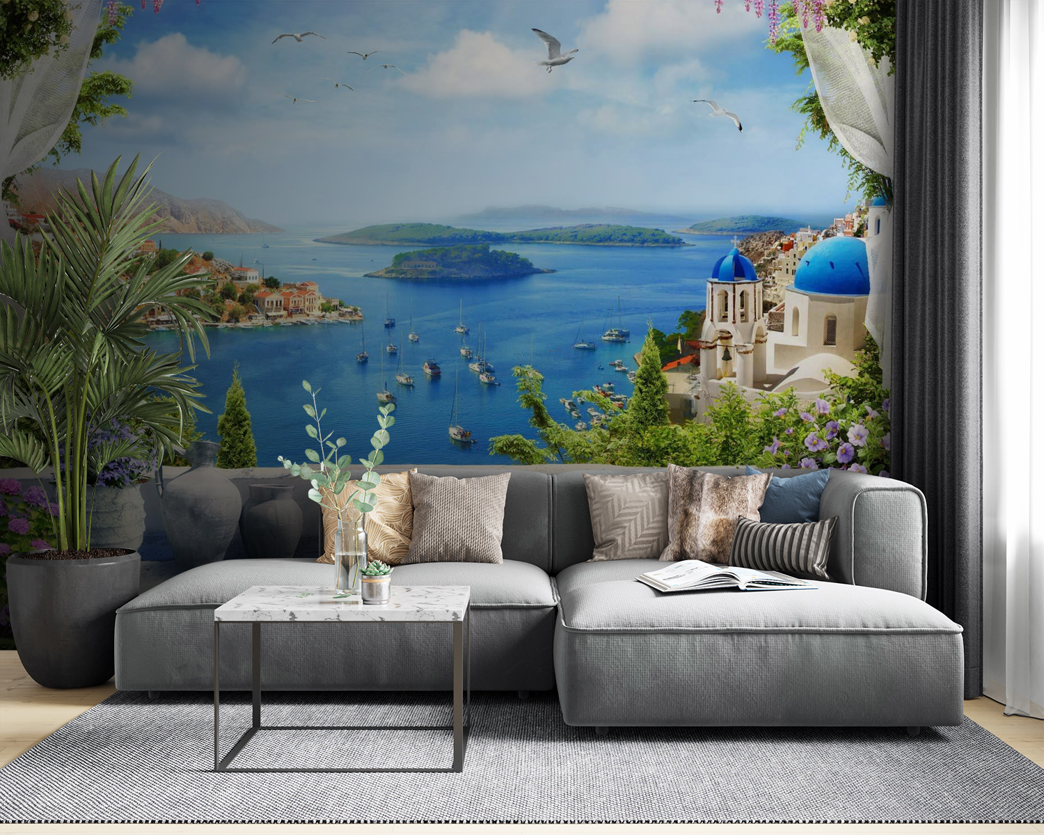 Murales “Paraíso egeo bajo un cielo despejado” es un trocito de cielo para su pared. Imagínese que cada mañana se despierta con la vista de este impresionante paisaje marino del Egeo, lleno de encantadora arquitectura costera y vibrantes flores en flor. Es como abrir una ventana a un mundo en el que el cielo es siempre azul y el mar está salpicado de veleros que navegan perezosamente a la deriva: pura perfección, ¿verdad?