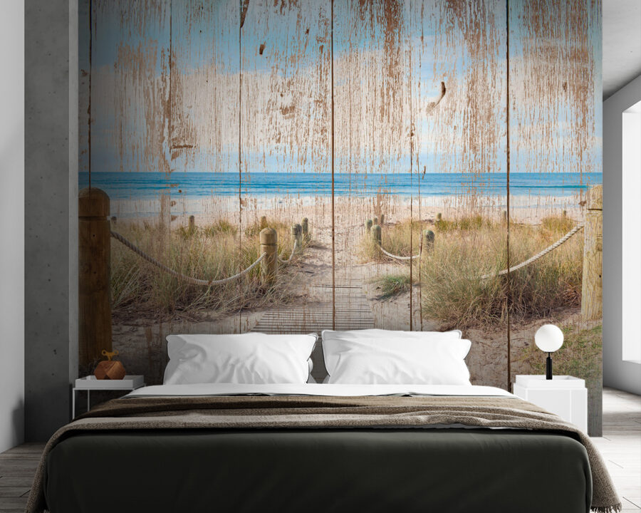 Imagina entrar en una acogedora cabaña en la playa, aunque solo estés en casa. Este mural, con ese encantador camino de madera que conduce directamente al océano, susurra historias de veranos perezosos y brisas saladas. Es como unas minivacaciones cada vez que lo miras, ¿no crees? La madera desgastada añade un toque de nostalgia, como si hubiera visto innumerables puestas de sol. Imagínate tomando tu café matutino mientras contemplas esas suaves olas. Quién sabe, ¡quizás te inspire un viaje improvisado a la playa! Perfecto para cualquier amante del mar que busque aportar un poco de calma, diversión y un toque de aventura a su espacio.