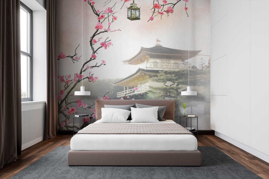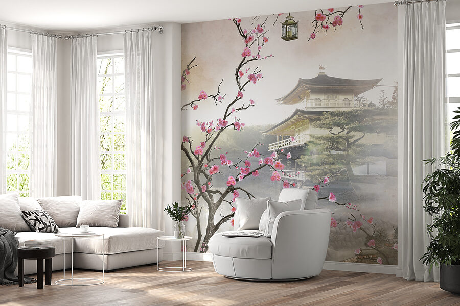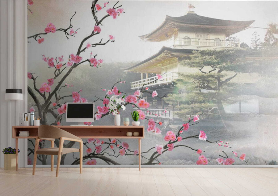 3 valoraciones en Fotomurales Flores enmarcando un sereno templo japonés