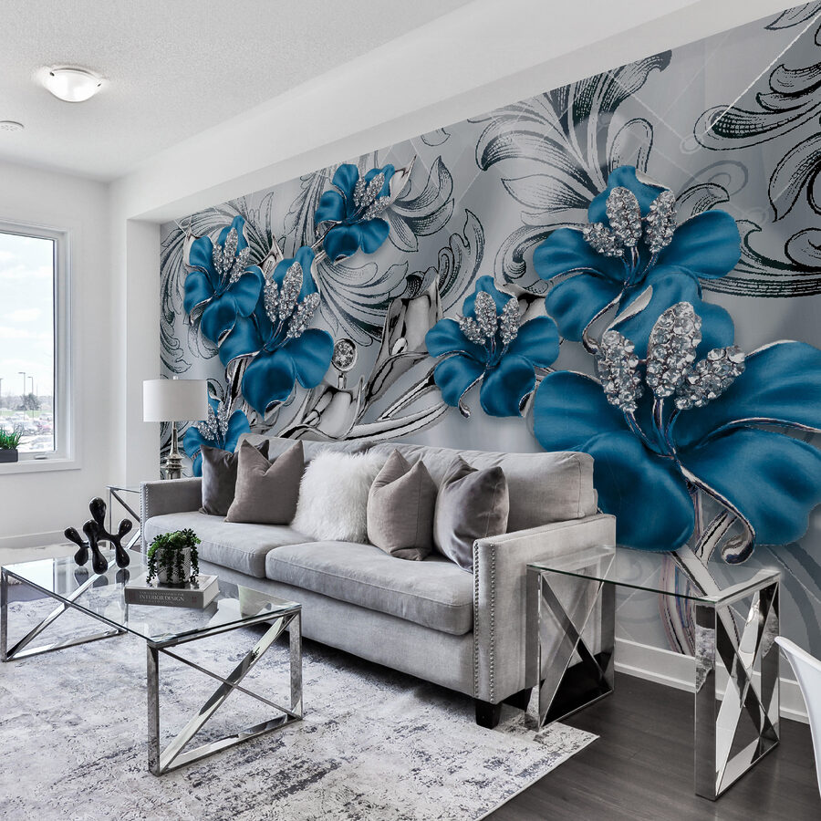 2 valoraciones en Fotomurales Flores azules ornamentadas con cristales