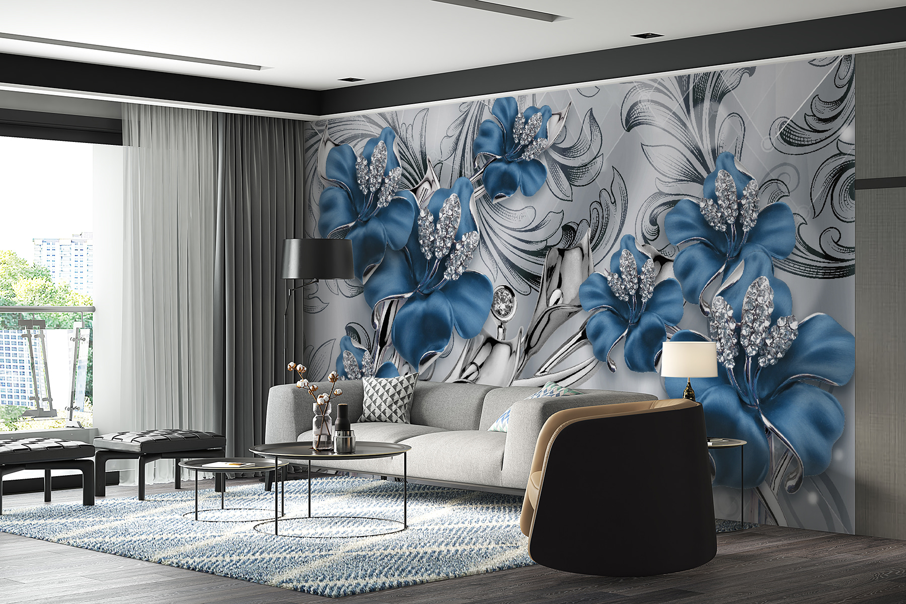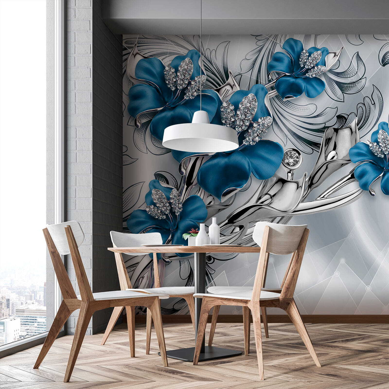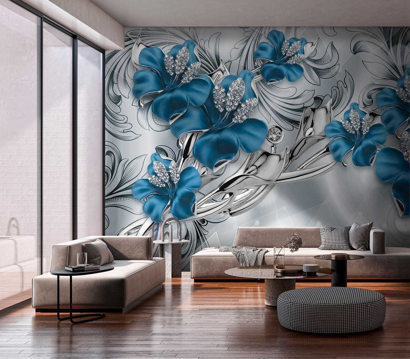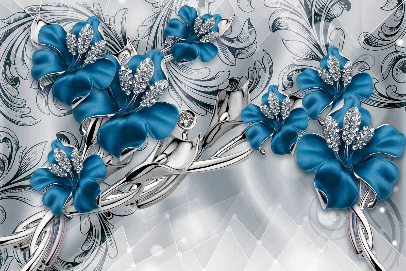 2 valoraciones en Fotomurales Flores azules ornamentadas con cristales
