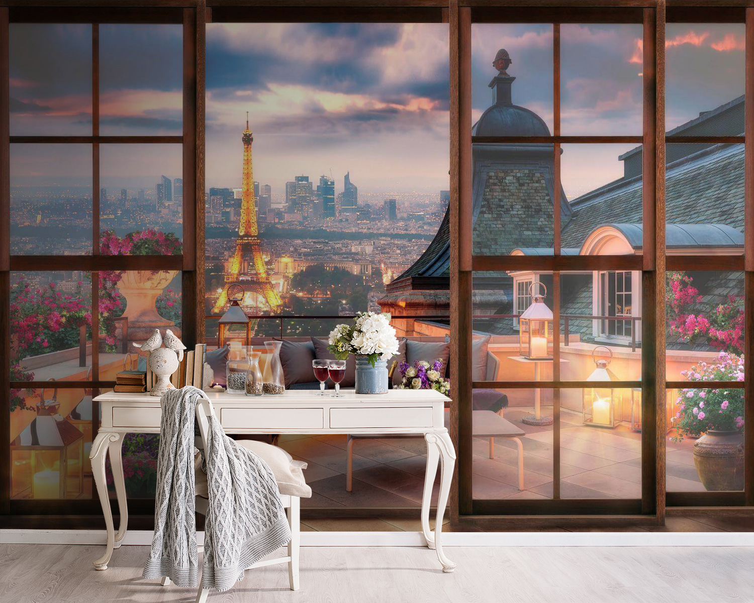 Imagina que acabas de entrar en un rincón acogedor de París: sí, así es este mural. “Botella de vino en un cubo de hielo”, y voilà, vibraciones chic instantáneas. Perfecto para añadir un poco de je ne sais quoi a su salón o comedor, este mural no sólo decora, sino que le transporta. Imagínatelo: En lugar de paredes lisas, tienes el paisaje urbano de una terraza parisina. Vino en la mesa, mullidos cojines por todas partes, flores que añaden un toque de color… todo enmarcado maravillosamente por sus “ventanas”. Desde luego, parece como si pudieras oír el zumbido lejano de la ciudad bajo el resplandor de la Torre Eiffel. Un pedacito de la elegancia europea en su propia casa. Perfecto para soñadores y entusiastas de la decoración: añade calidez, encanto y una pizca de romanticismo. ¿Quién necesita un billete de avión?