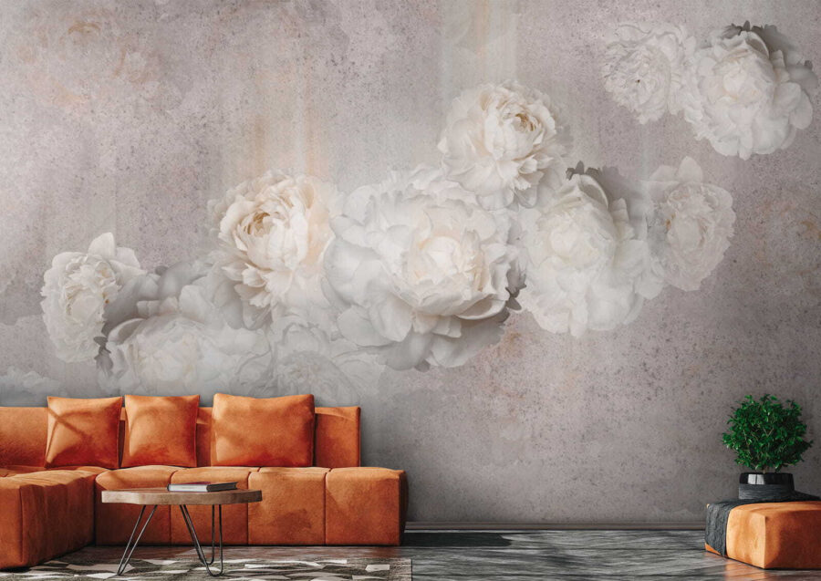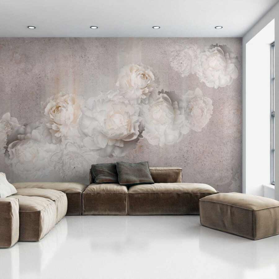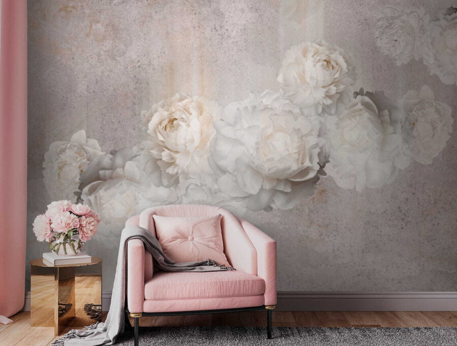 Fotomurales Peonías en tonos pastel sobre fondo texturizado