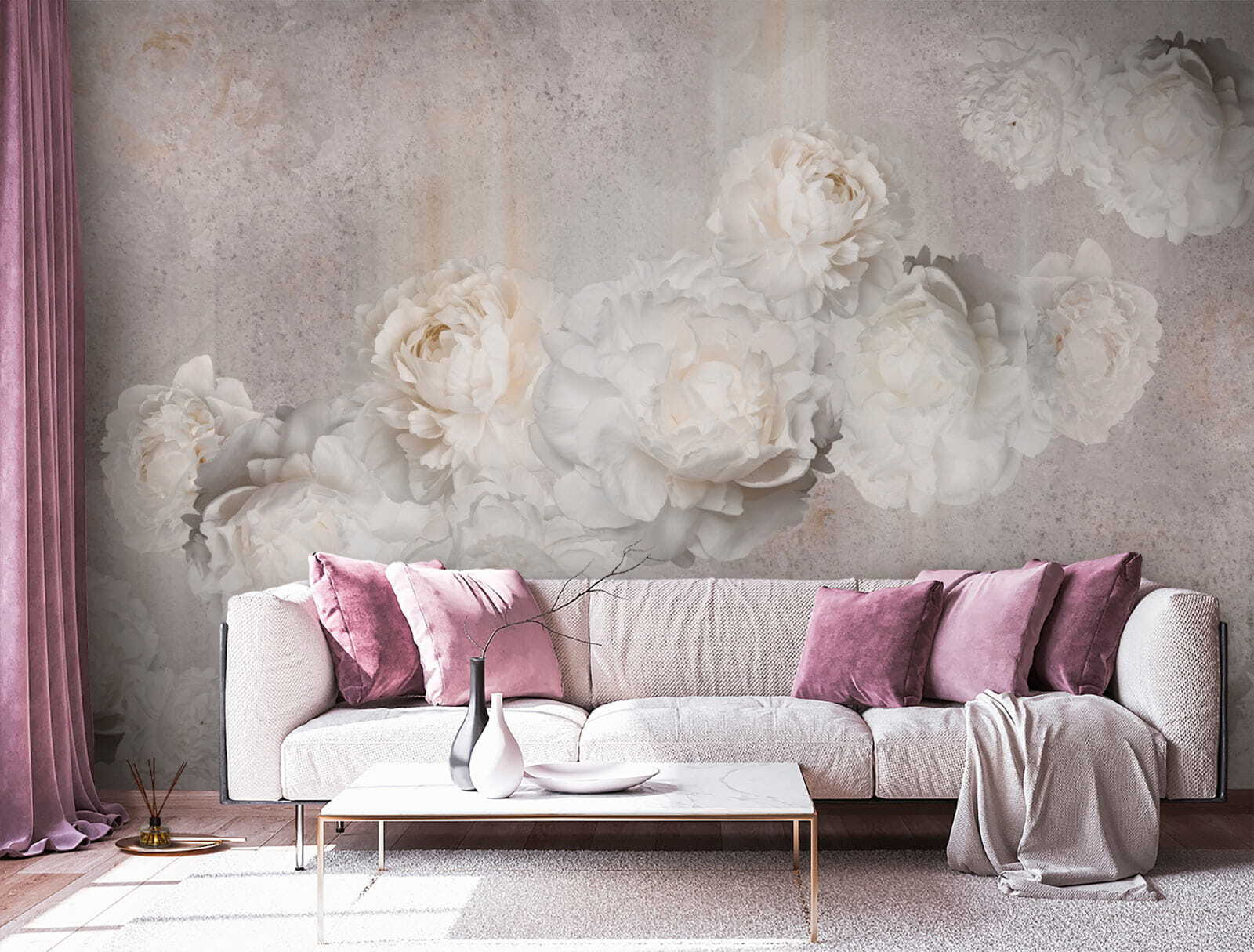Imagínese que entra en una habitación que parece un sereno oasis en un jardín. Eso es exactamente lo que aporta este mural de flores blancas sobre un fondo suave. Los pétalos parecen flotar, creando un ambiente etéreo que hace que cualquier espacio parezca más tranquilo al instante. Los amigos pueden hacer una pausa en medio de la conversación, perdidos en la elegancia de ensueño. Es perfecto para ese rincón que necesita un toque suave o para un salón que quiere un toque fresco. Imagínate acurrucándote con un buen libro, rodeado de esta suave belleza: pura felicidad. No es sólo decoración, es como llevar un soplo de aire fresco al interior. ¿Quién diría que las flores podrían transformar una habitación tan fácilmente?