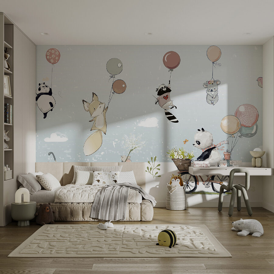 Imagínese que entra en la habitación de su hijo y le recibe una caprichosa escena de un panda con una cesta de flores en la mano: es como entrar en una dulce ensoñación. Este encantador mural de pared es perfecto para cuartos infantiles o cualquier espacio en el que desee un toque de encanto juguetón. El aspecto suave y esponjoso del panda, combinado con globos de colores y una bicicleta, es sinónimo de diversión y aventura. Imagina contar cuentos antes de dormir inspirados en estos encantadores personajes. No es sólo decoración; es un teatro para la imaginación, que aporta sonrisas y un poco de magia a los momentos cotidianos.